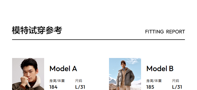 China (cm) 165 / 88-90 170 / 96-98 175 / 108-110 180 / 118-122 185 / 126-130