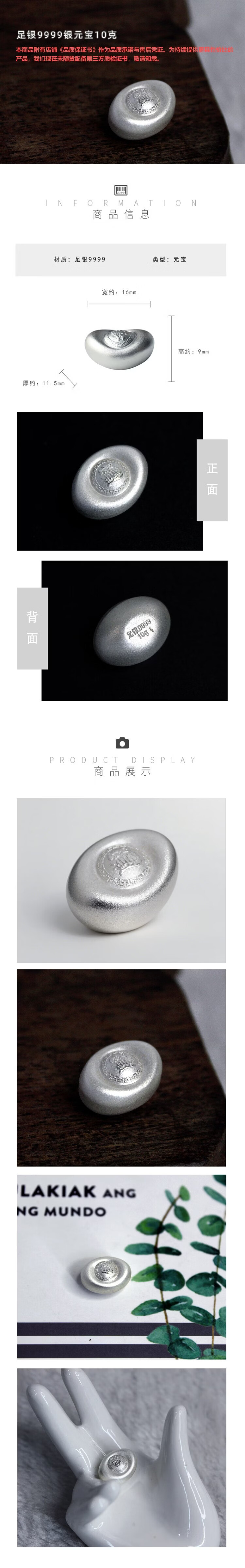 Pure bamboo pure silver 9999 silver ingot, solid sterling silver investment silver ingot, silver ornament with the word