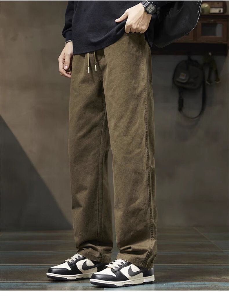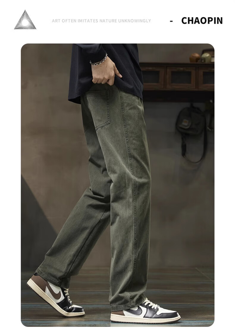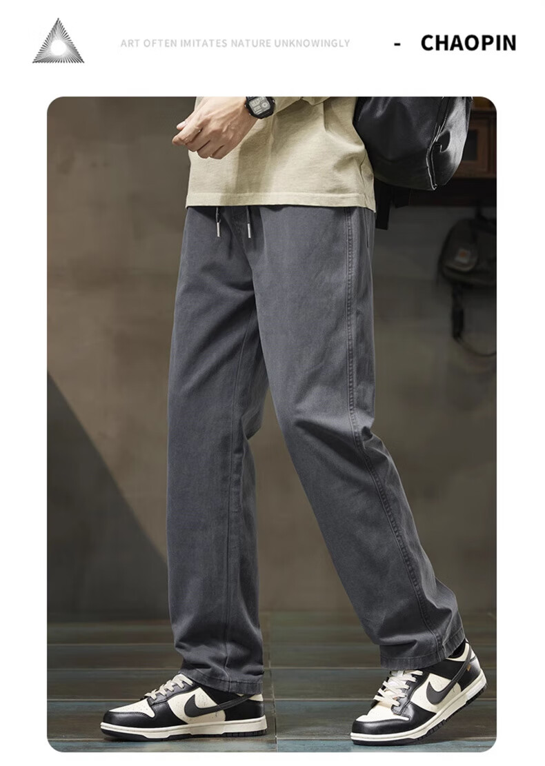 JEANSWEST casual pants men's 2025 new autumn loose straight trousers men's workwear pure cotton sports pants men's spring and autumn black L 110-130Jin Jin equals 0.5 kg