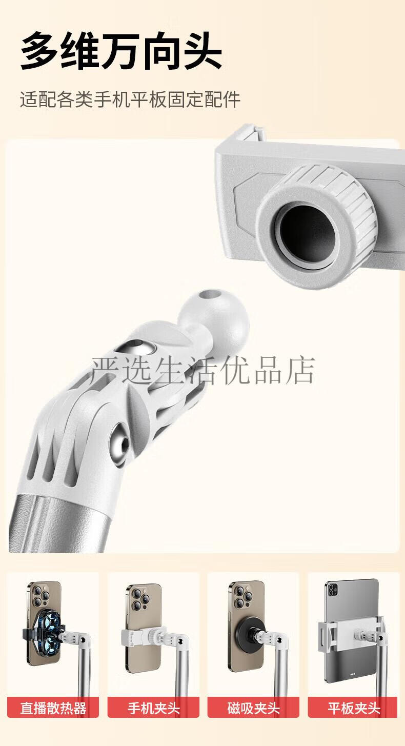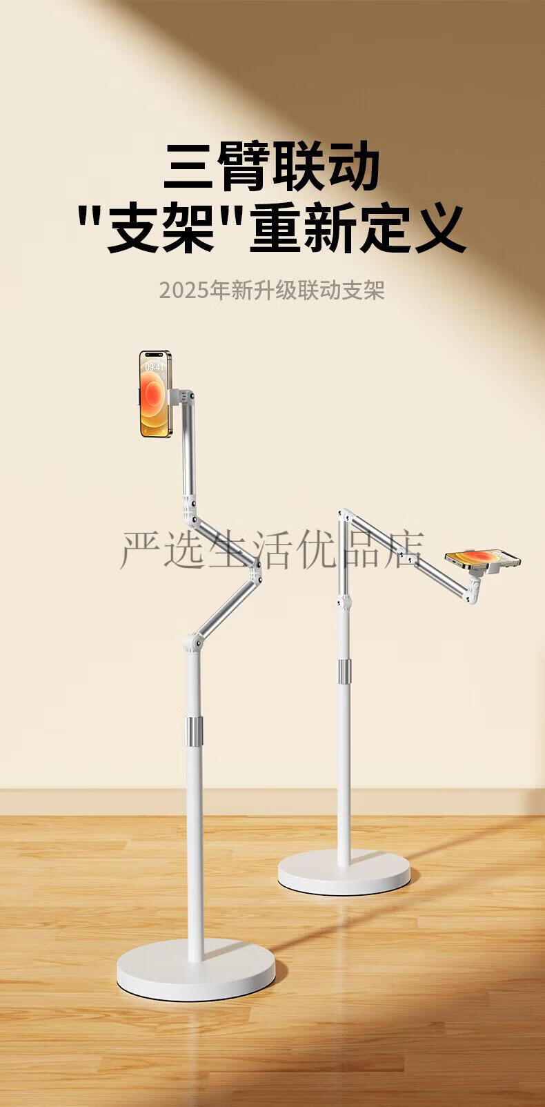 JIAHUACAI 2025 new three-arm live broadcast mobile phone stand floor-standing overhead shooting stand with radiator multi-functional stand iPad tablet support three-arm starlight white limited edition for mobile phones