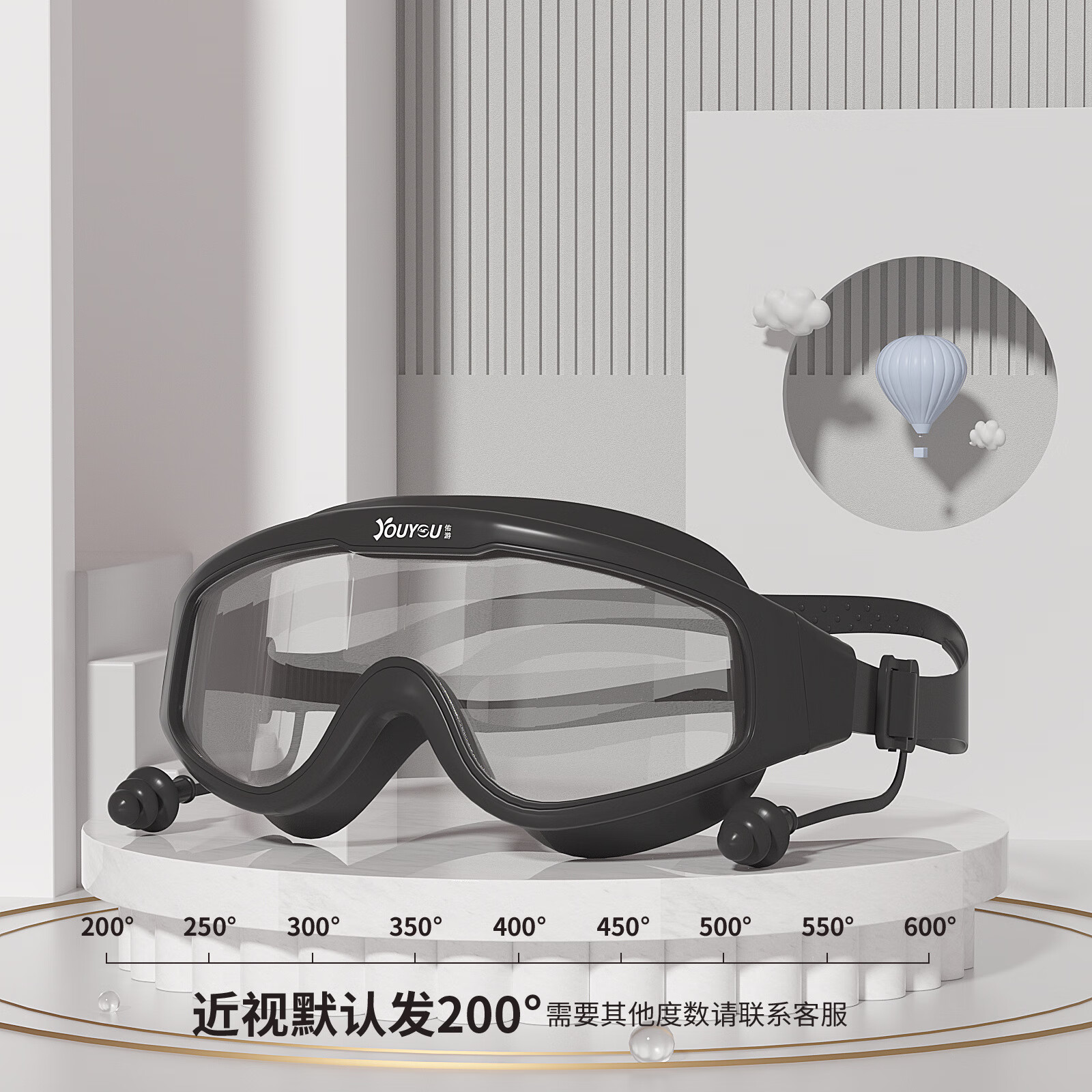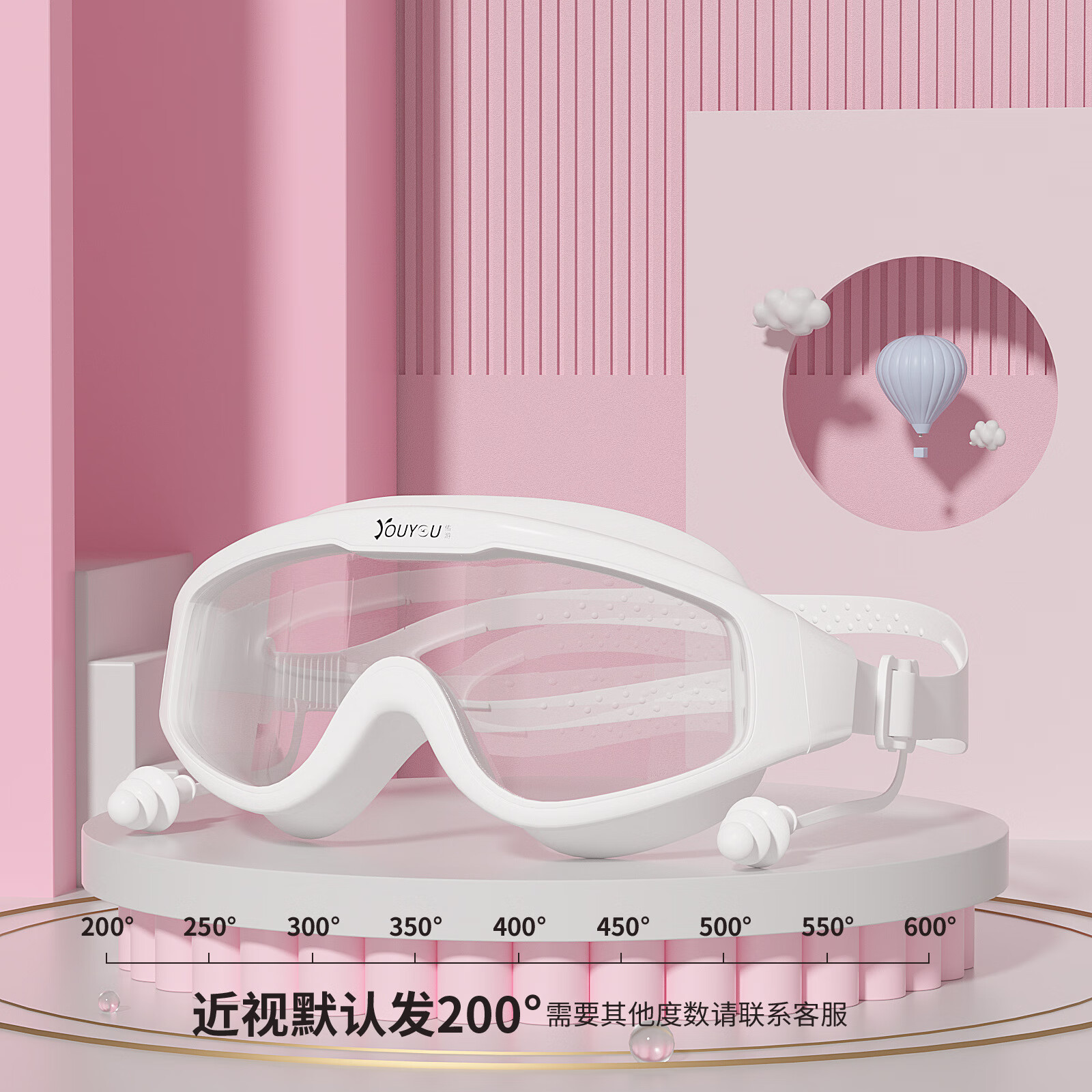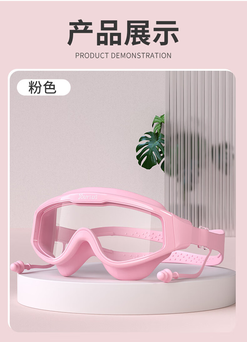You Swimming Goggles Waterproof and Anti-fog Myopia Large Frame One-piece Earplugs Glasses for Men and Women Professional Diving and Swimming Equipment Hot Selling Transparent Pink + One-piece Earplugs Bag Special Offer