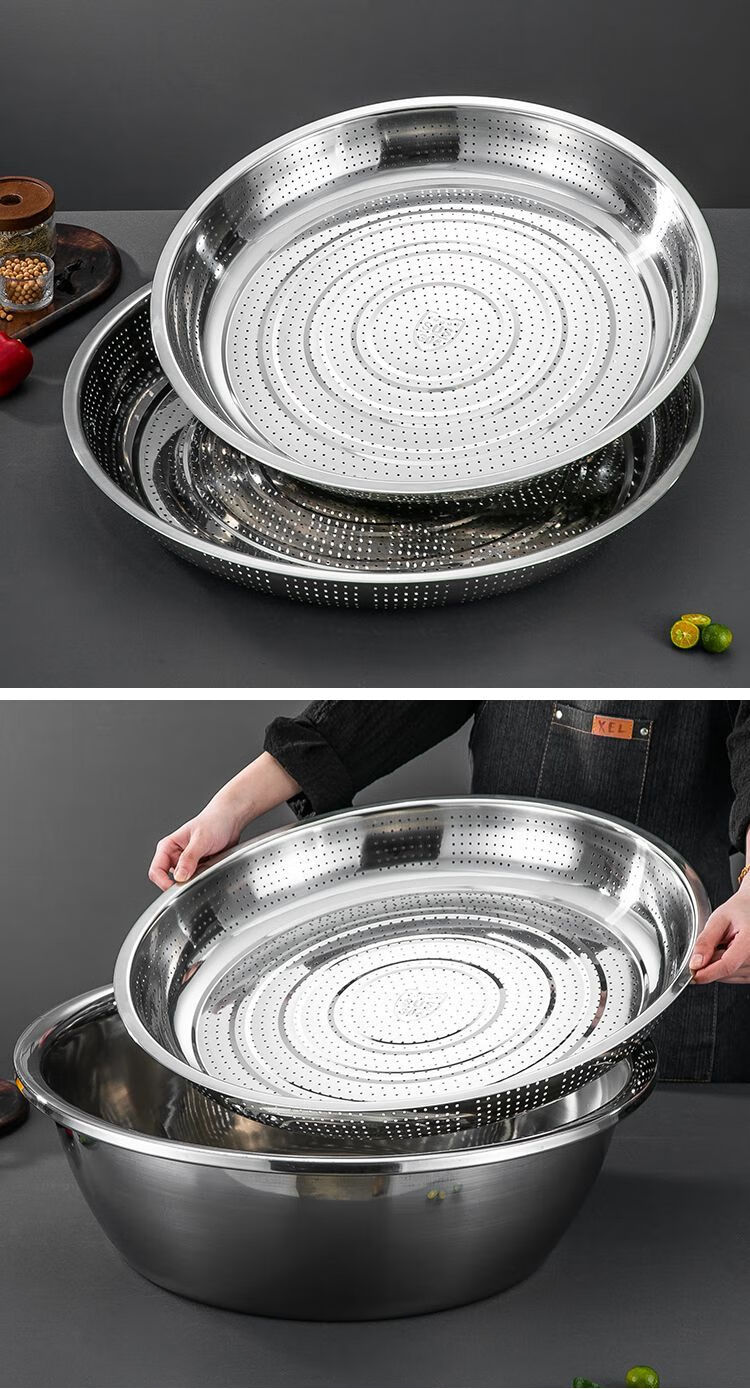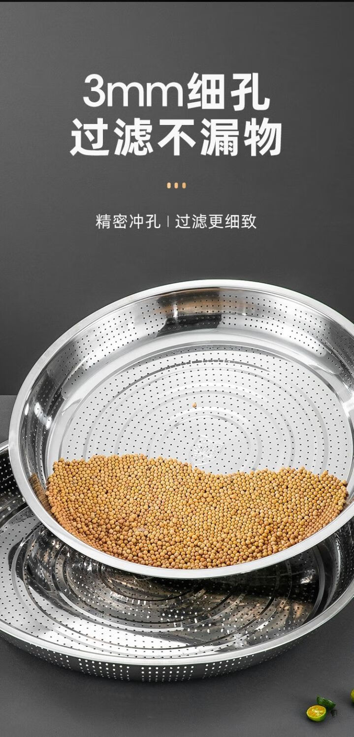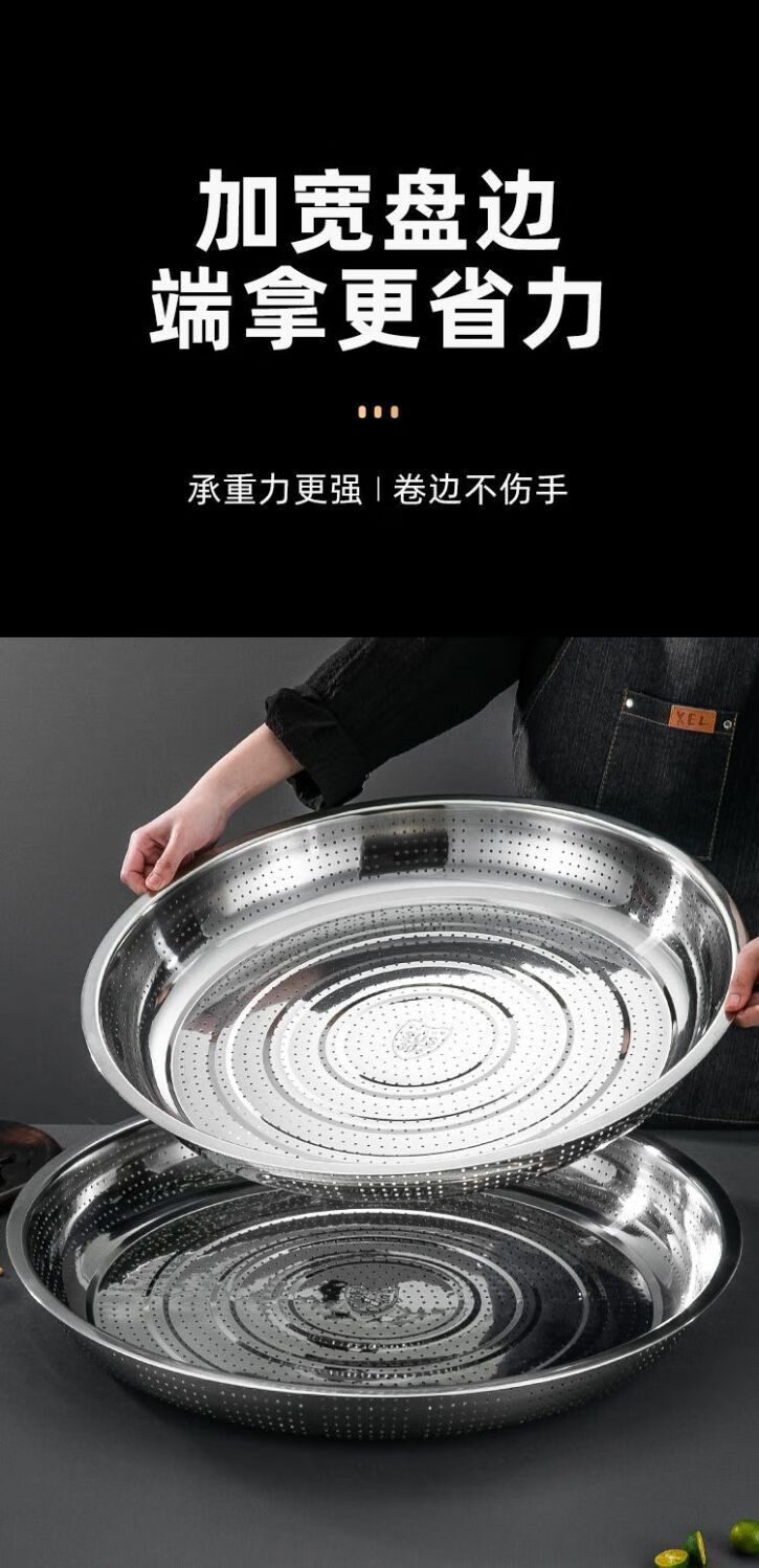 Raft core sieve household food grade 304 stainless steel thickened steaming plate fine hole drying plate sieve dry goods steaming rice plate leaking basin 55cm extra thick food grade stainless steel drying plate + bottom basin