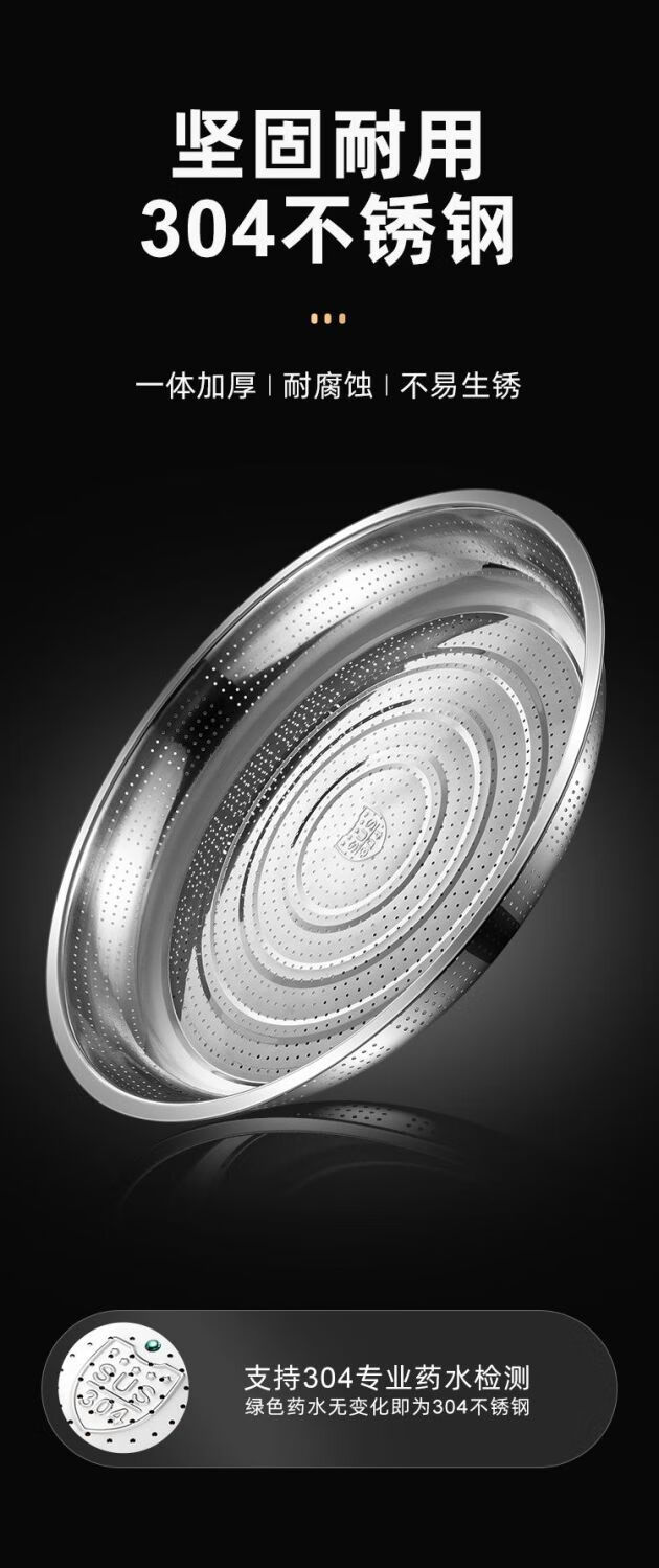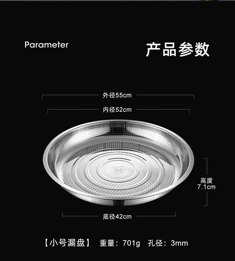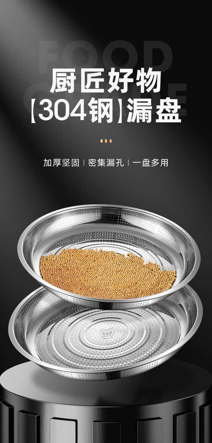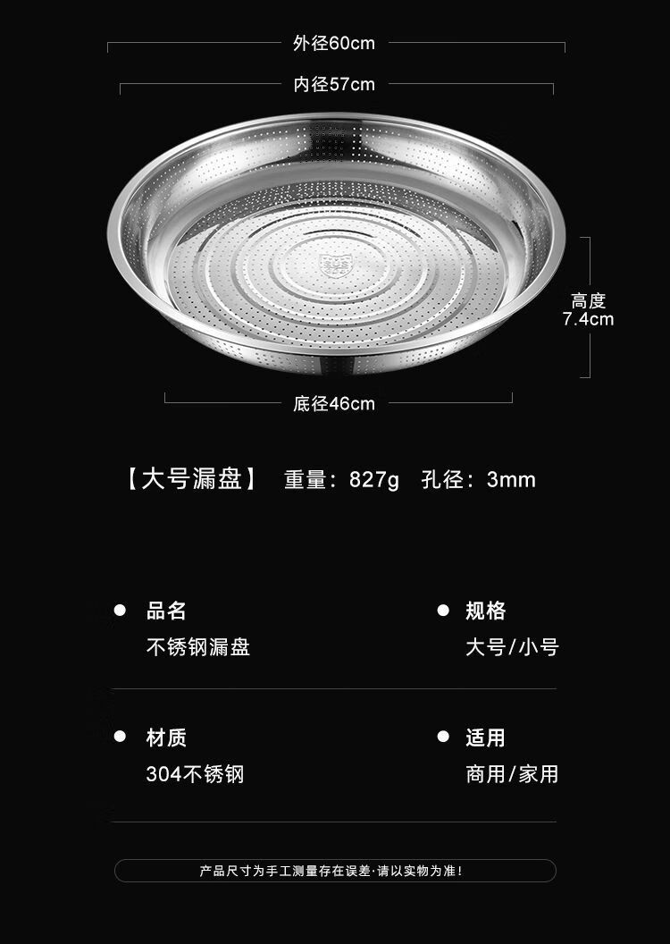 Raft core sieve household food grade 304 stainless steel thickened steaming plate fine hole drying plate sieve dry goods steaming rice plate leaking basin 55cm extra thick food grade stainless steel drying plate + bottom basin