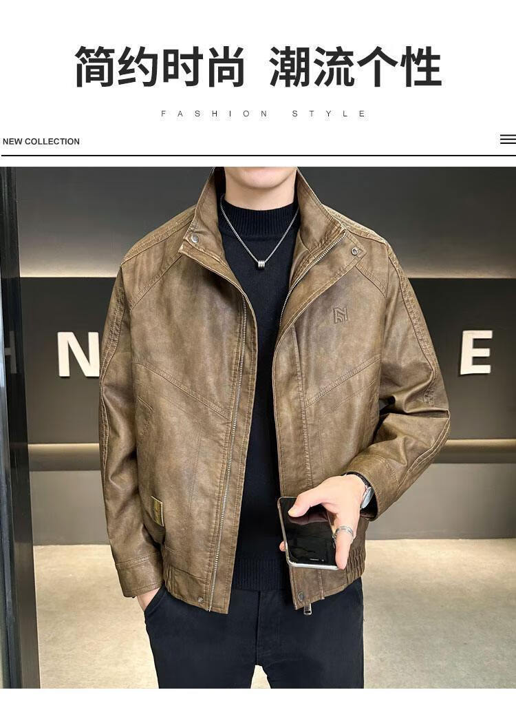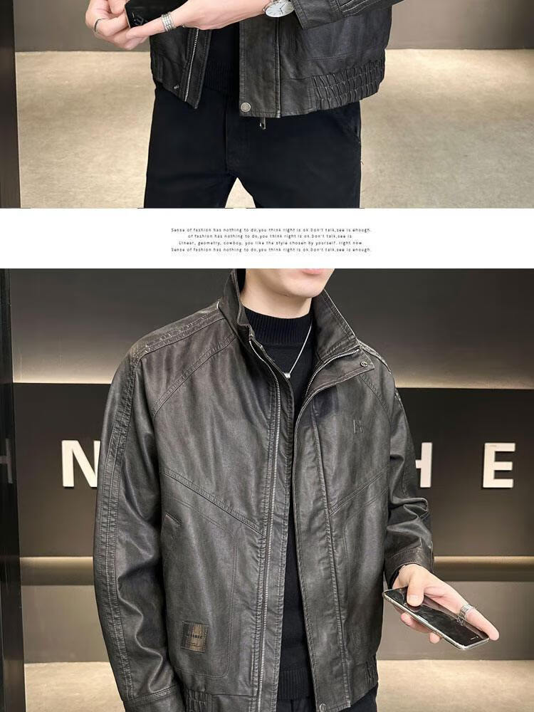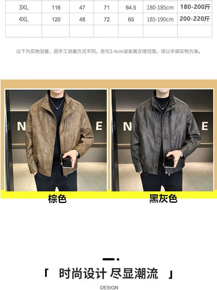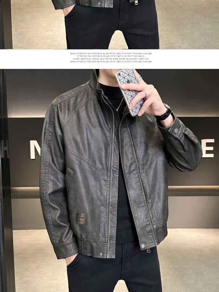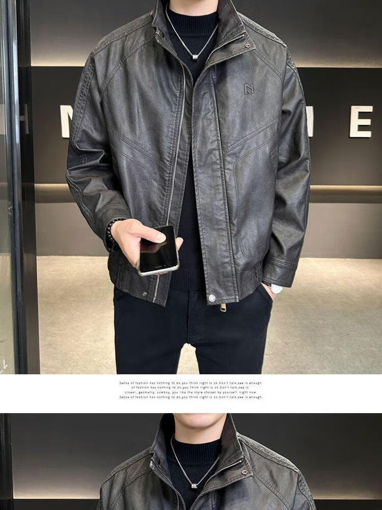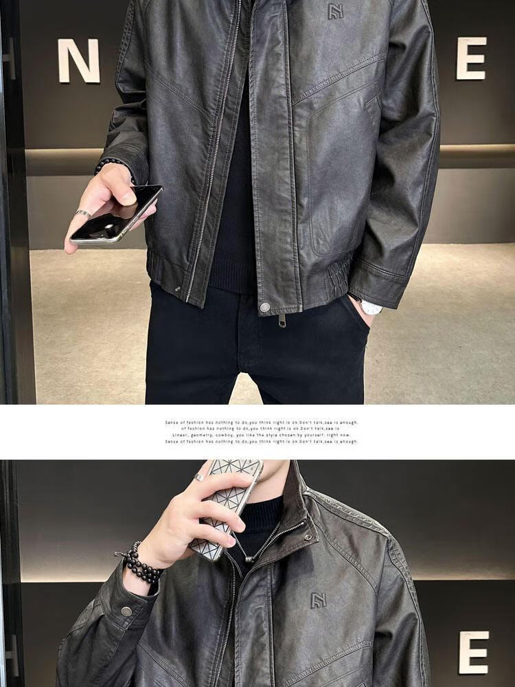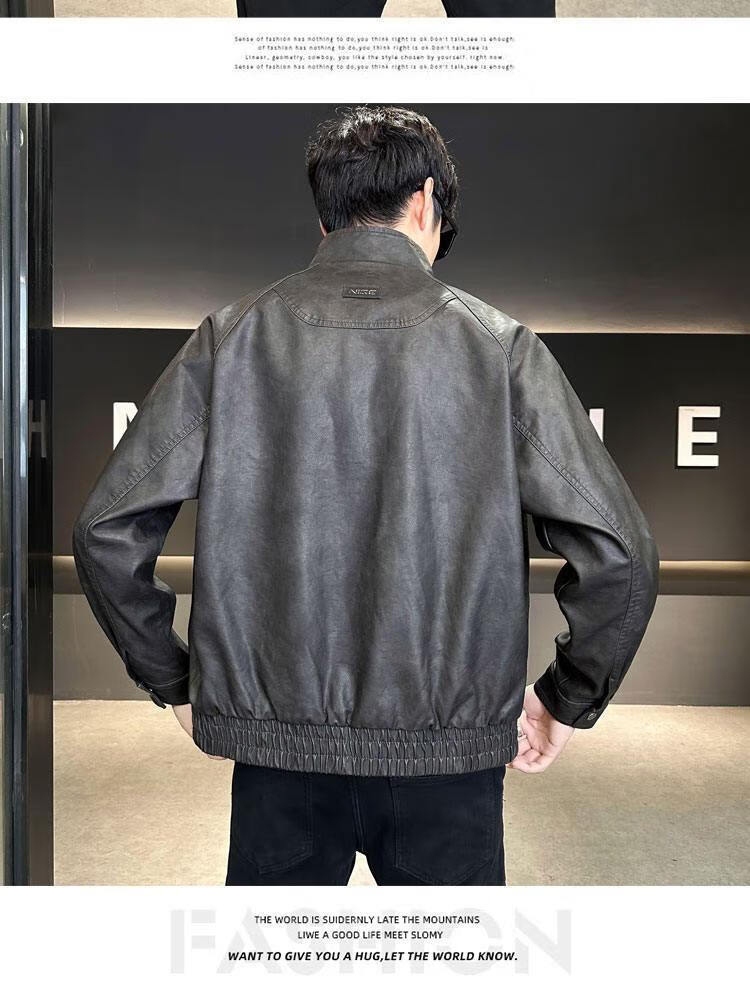 2025新款皮衣男士短款皮夹克潮牌帅气高端机车服立领宽松休闲外套 黑灰色 3XL 推荐体重145-160斤