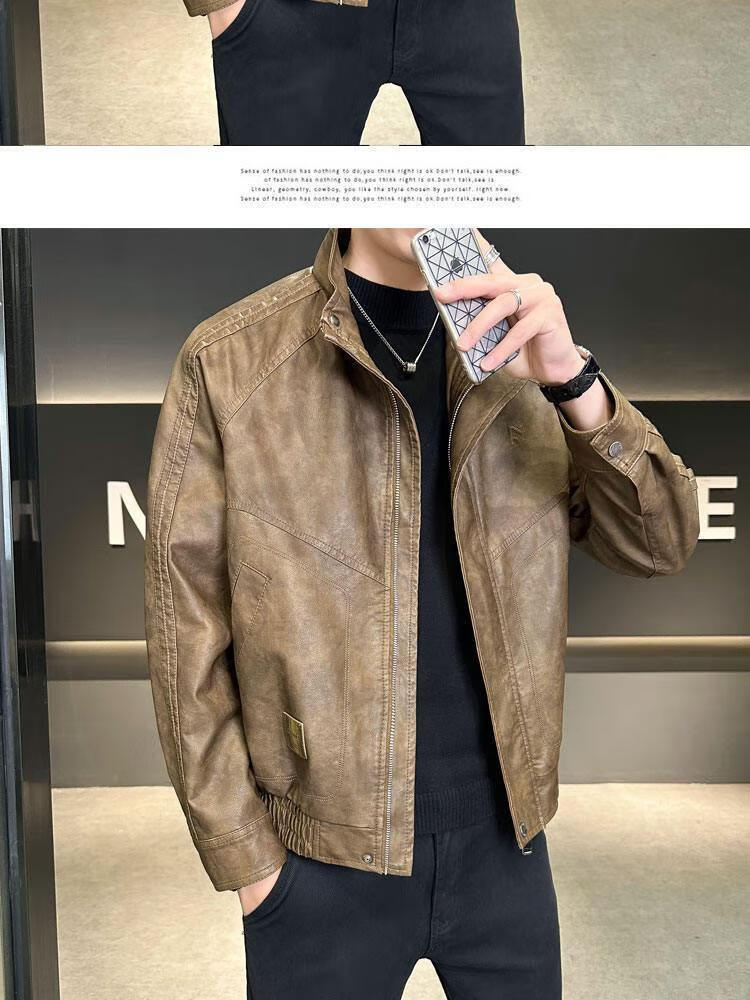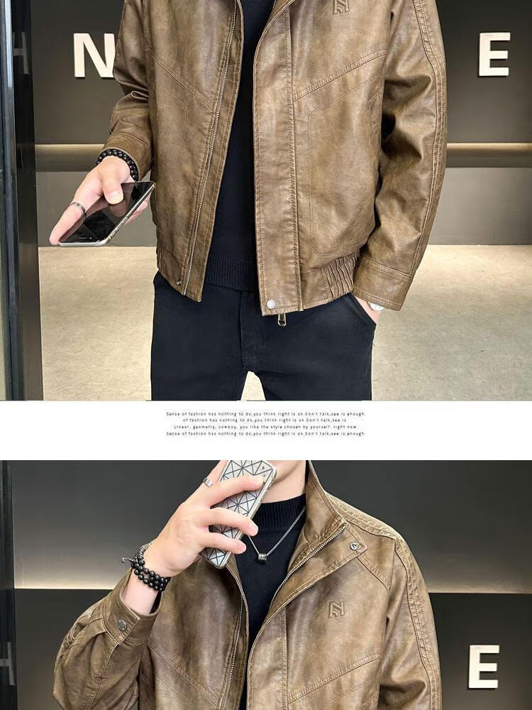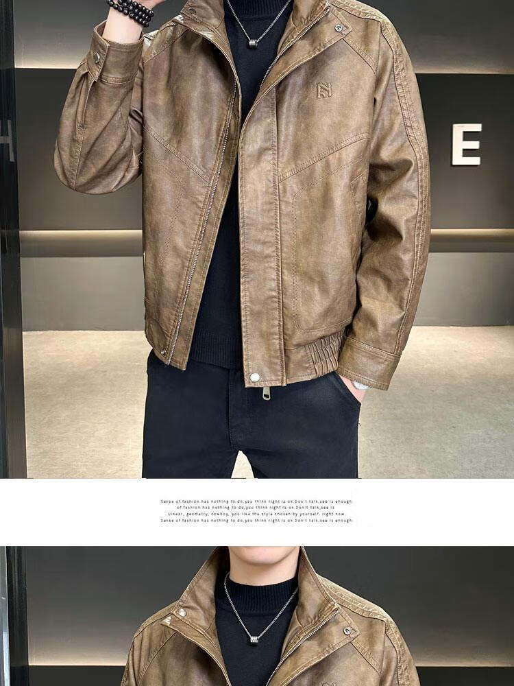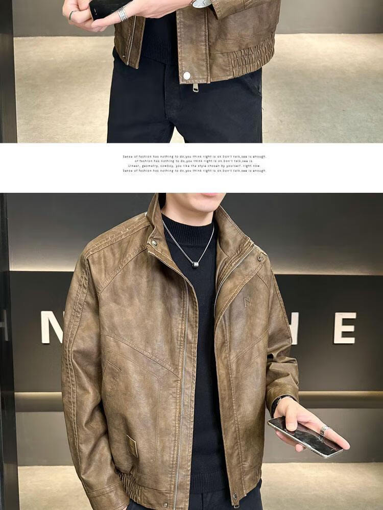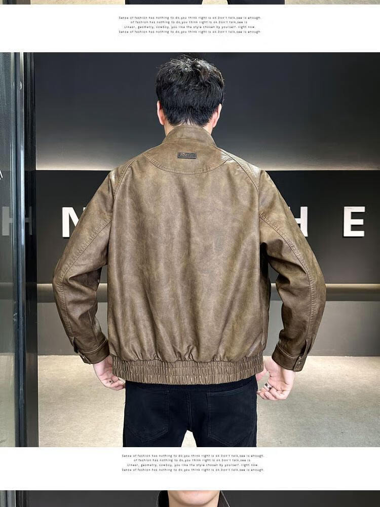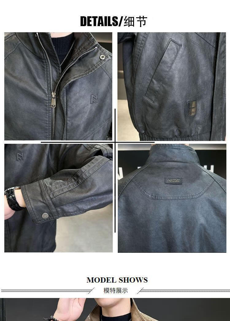 2025新款皮衣男士短款皮夹克潮牌帅气高端机车服立领宽松休闲外套 黑灰色 3XL 推荐体重145-160斤