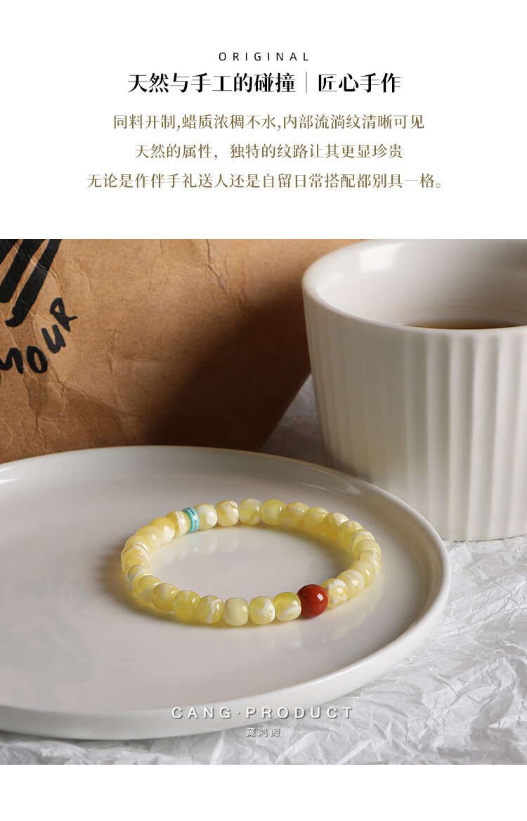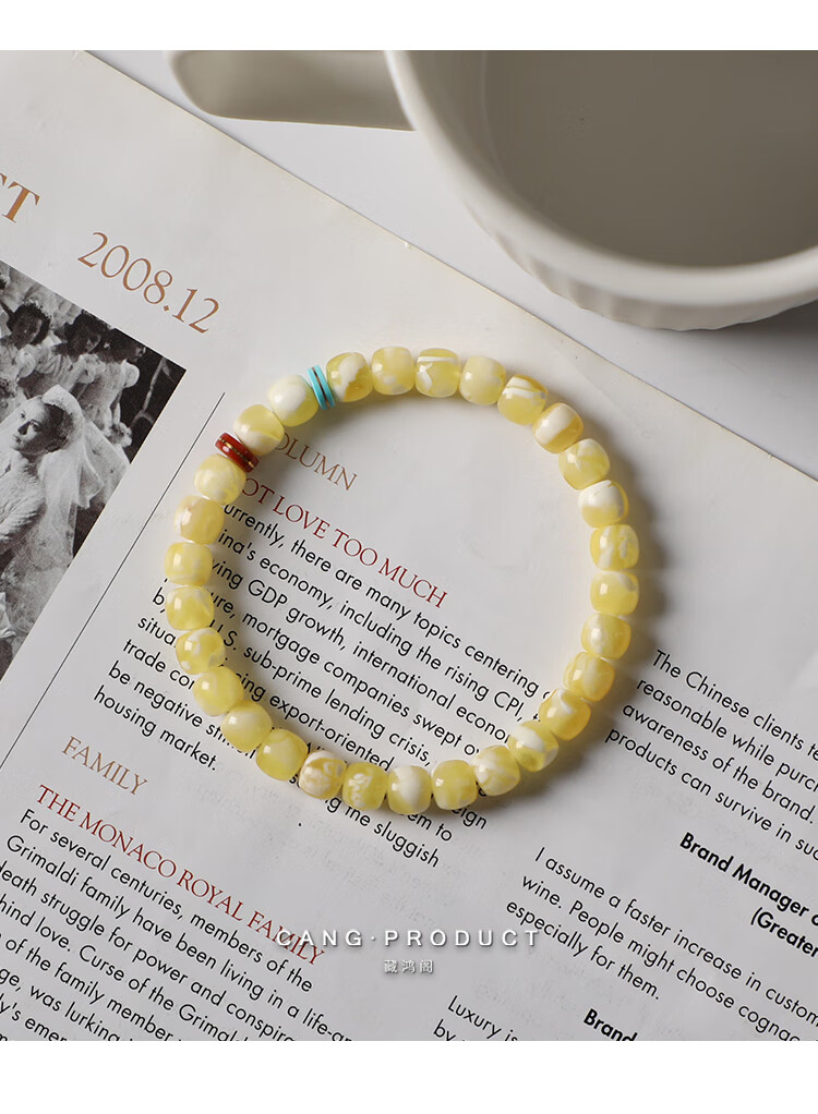 Fat Donglai quality natural raw mineral Russian material white flower beeswax old type barrel bead bracelet Buddha beads cultural play original boutique women's boutique bracelet diameter 9mm