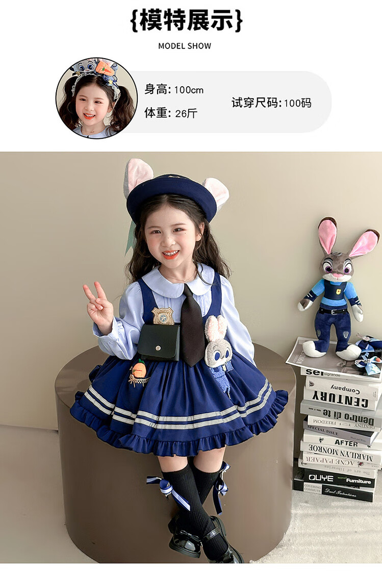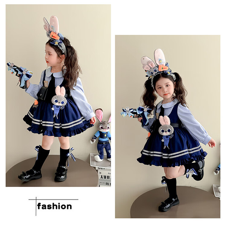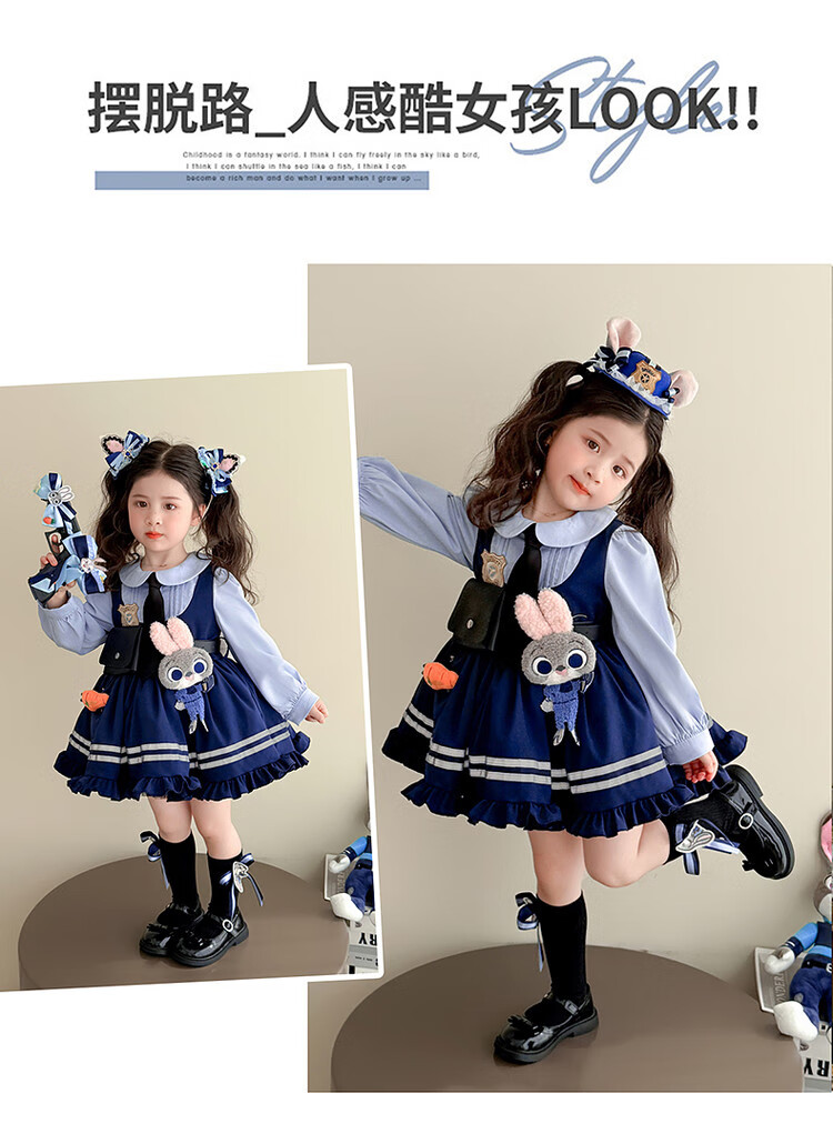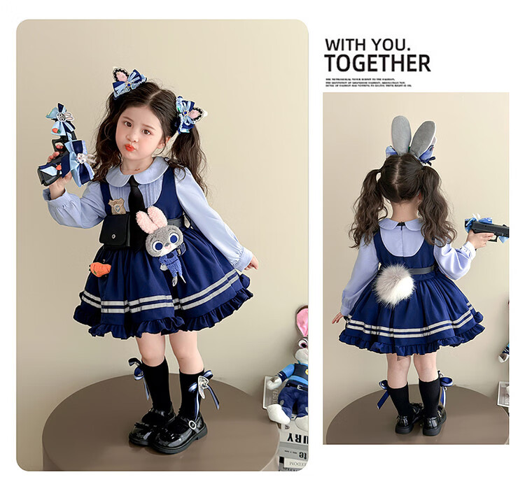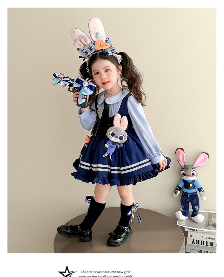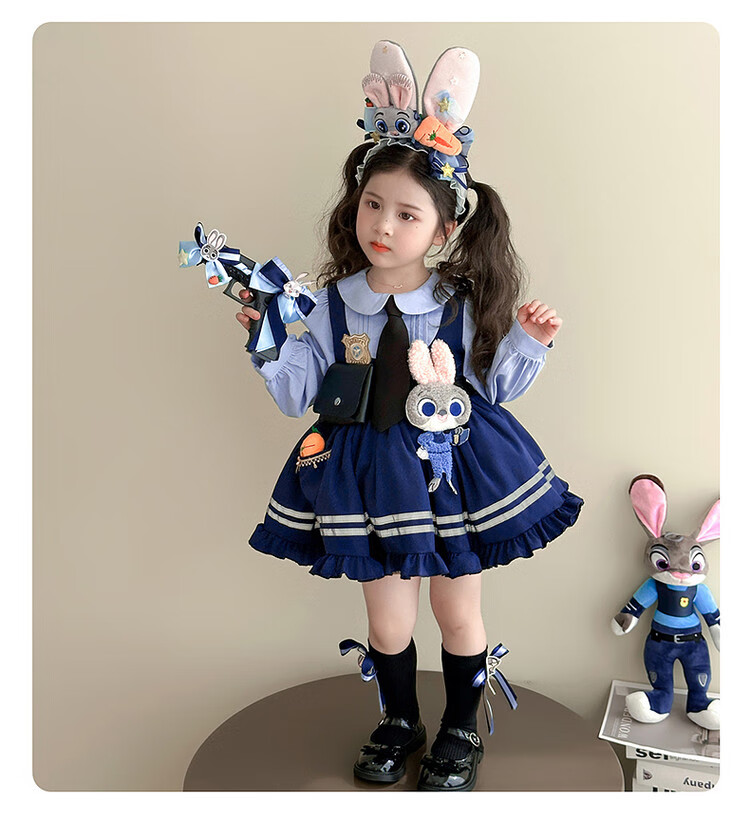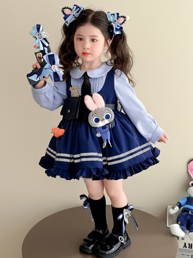 G.duck Little Yellow Duck Judy Rabbit Police Officer Clothes Girls Dress Spring and Autumn Lolita Princess Dress Children's Birthday Dress Skirt 100 Size 2~3 years old 90-100cm