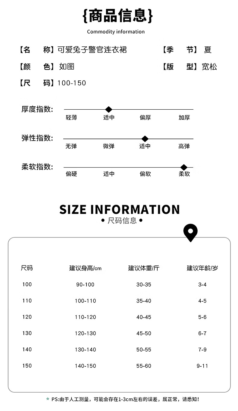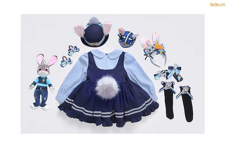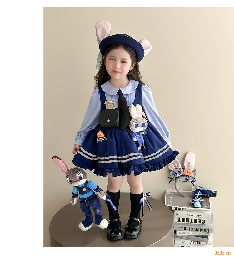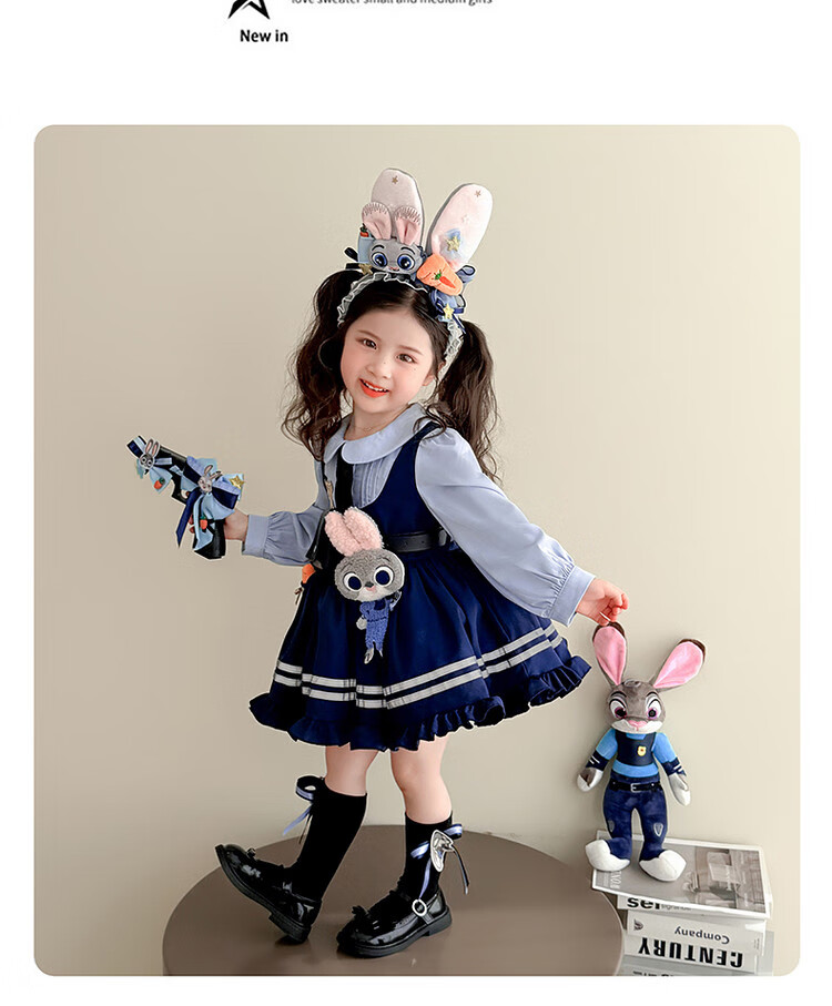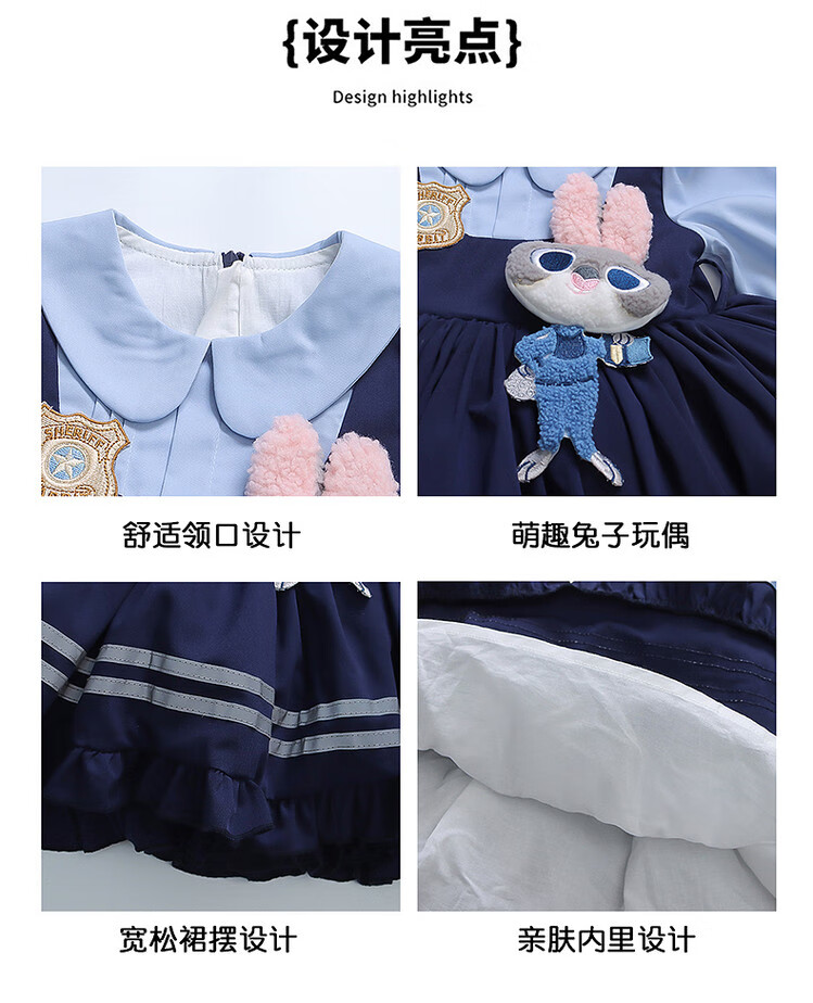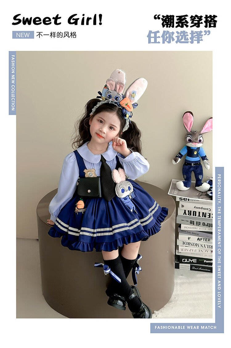 G.duck Little Yellow Duck Judy Rabbit Police Officer Clothes Girls Dress Spring and Autumn Lolita Princess Dress Children's Birthday Dress Skirt 100 Size 2~3 years old 90-100cm