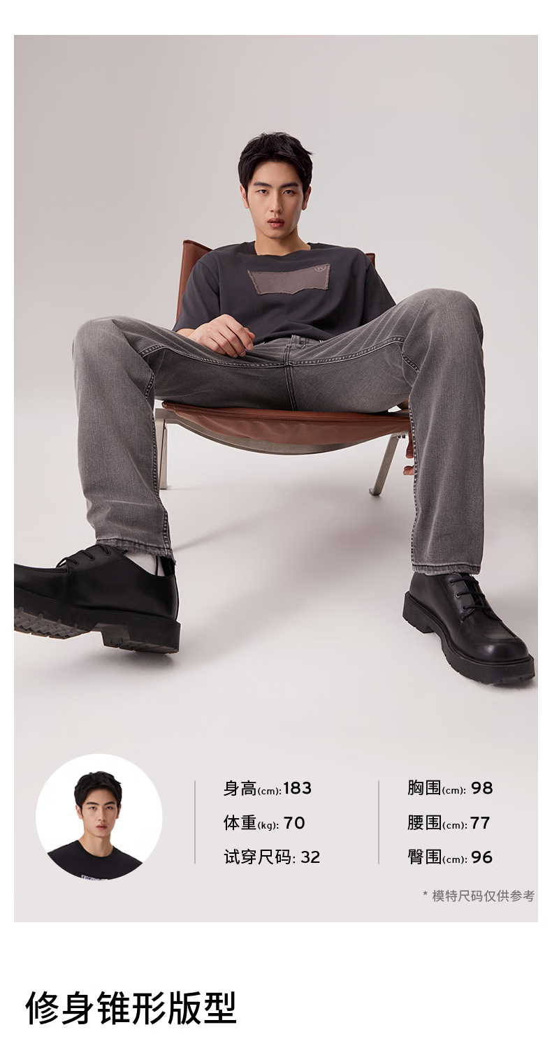 Levi's Levi's autumn American street men's 502 standard tapered simple retro denim trousers light smoke gray 32 (32)
