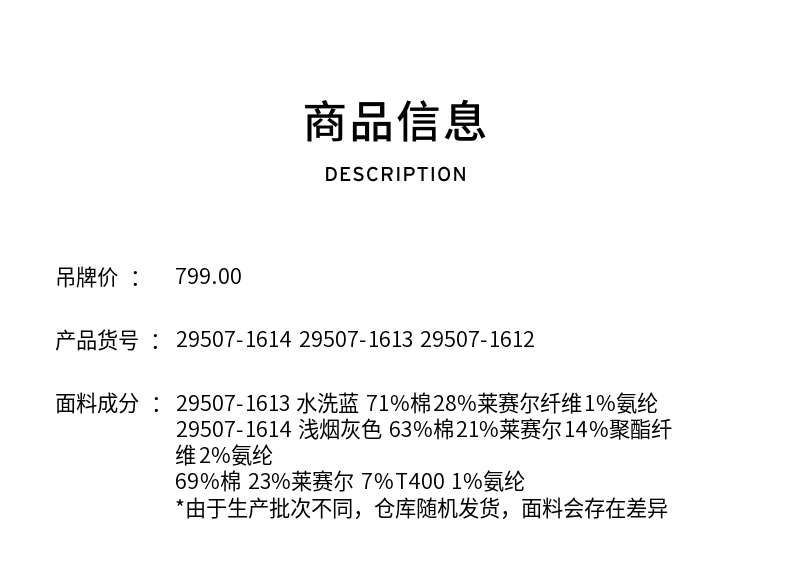 Outseam (cm) 99 cm 101.5 cm 104 cm 106.5 cm 109 cm