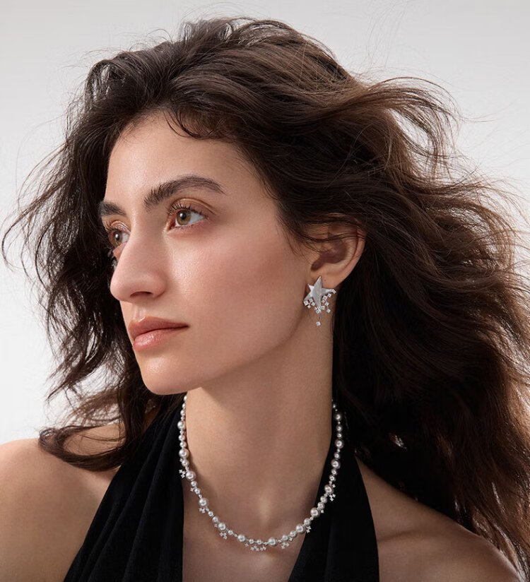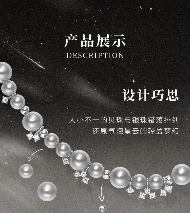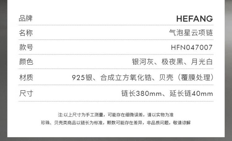 HEFANG He Fang Jewelry Bubble Nebula Necklace Clavicle Chain Light Luxurious and High-end Ladies Birthday Gift for Girlfriend Combination (Galaxy Gray Necklace + Earrings)
