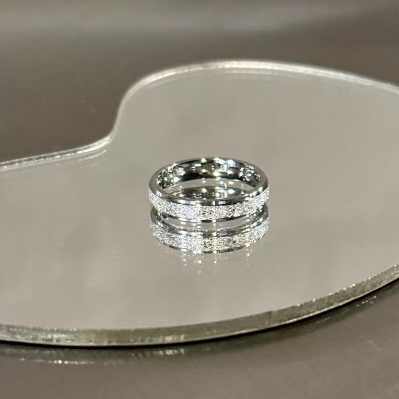 Gypsophila frosted black and white ring for men and women niche high-end design couple rings titanium steel non-fading ring Gypsophila frosted silver ring No. 8 reference weight 115-125Jin Jin is equal to 0.5 kg and is worn by the crowd