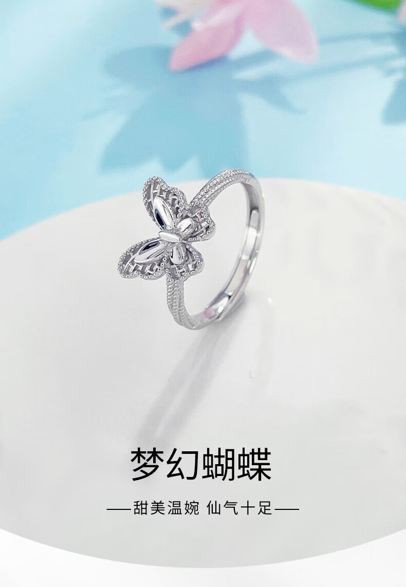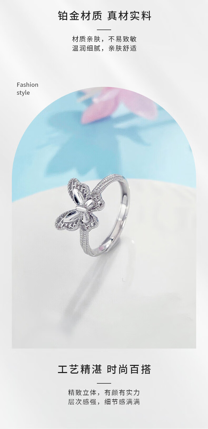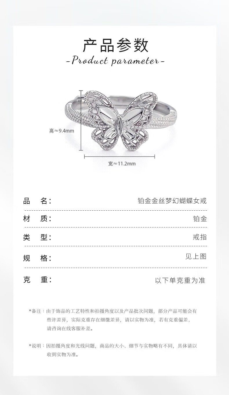 Beijing Gold Trading Center Co., Ltd. Platinum Gold Fantasy Butterfly Ring for Women Dream Butterfly Ring Approximately 4g