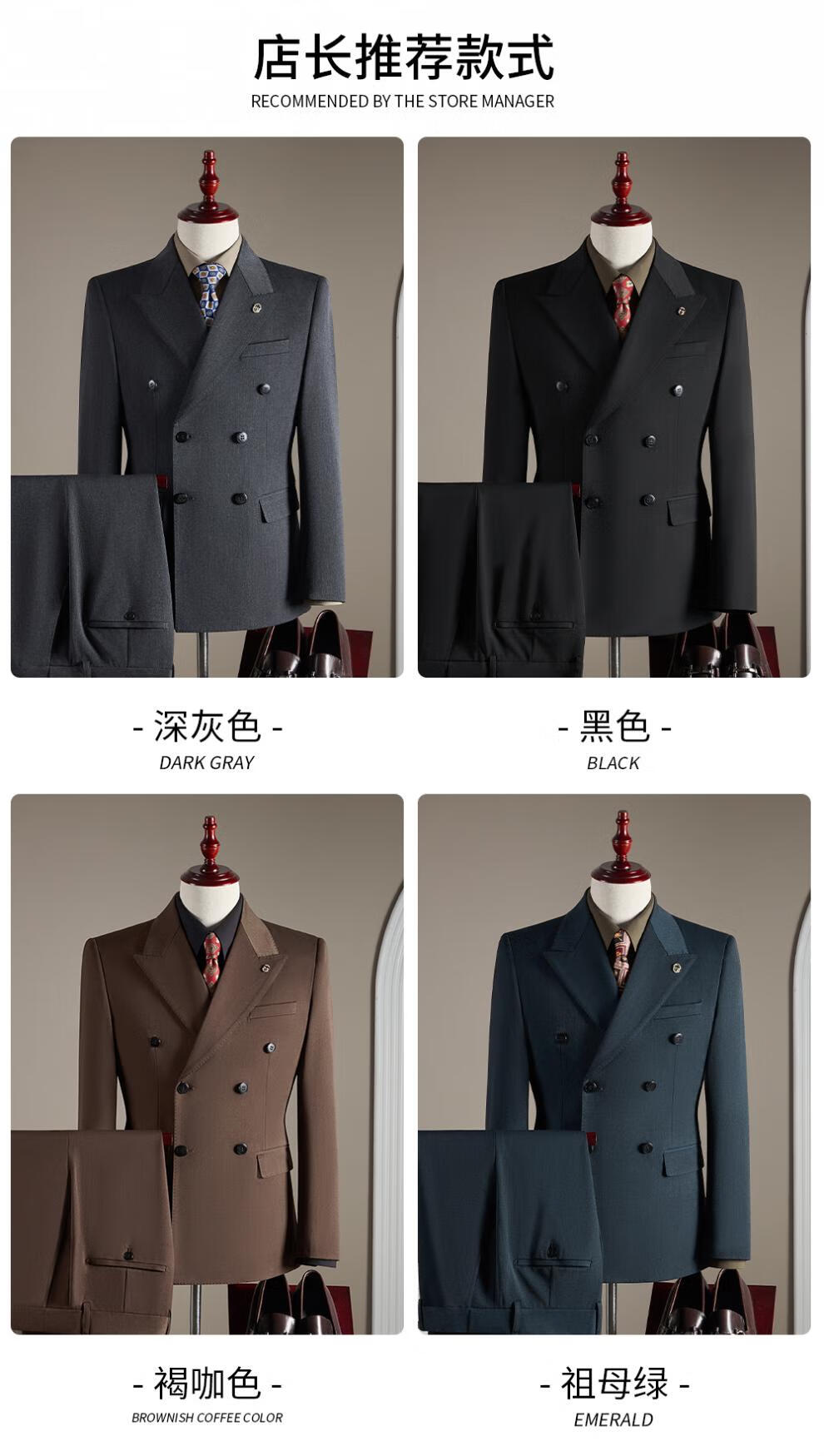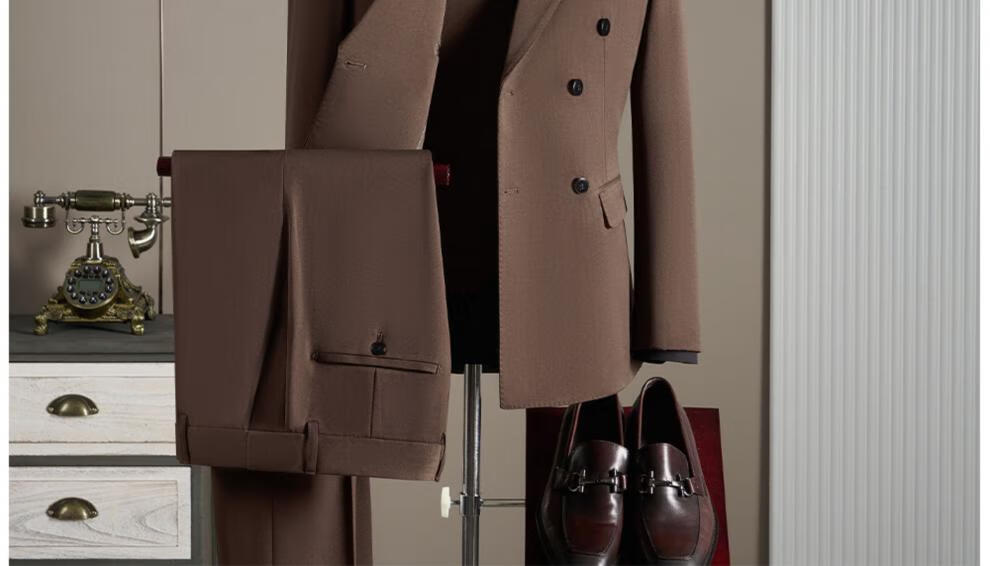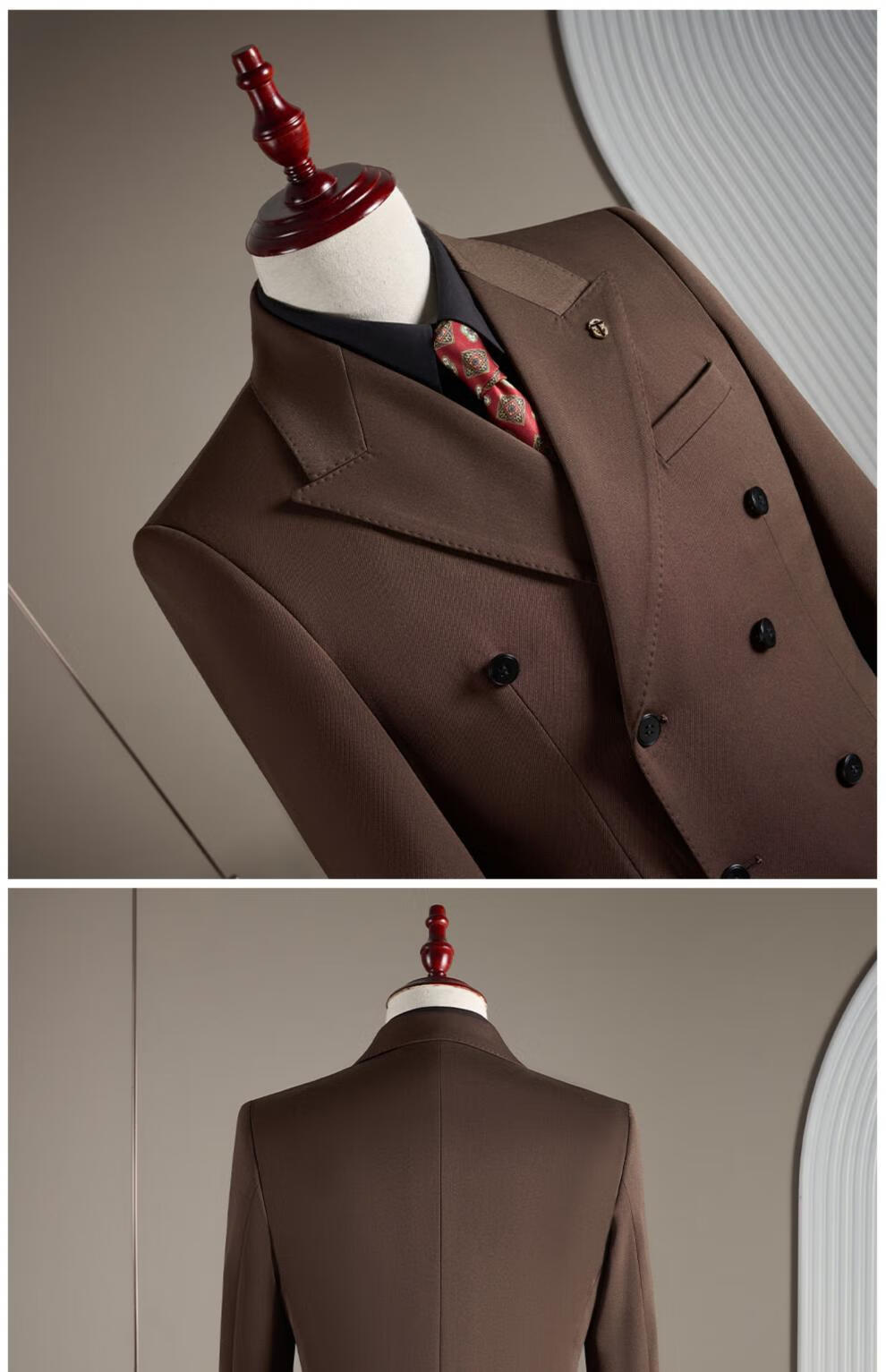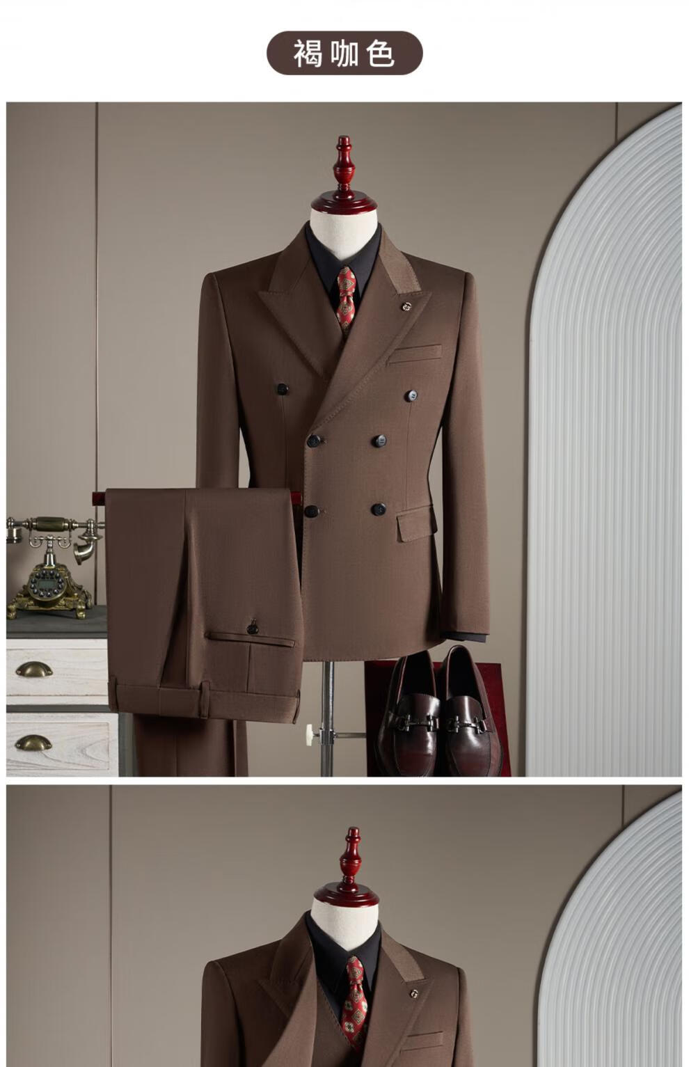 ROMON double-breasted wool suit men's suit business formal high-quality slim large size groom's wedding suit three-piece brown brown single-piece suit M (95-110Jin Jin equals 0.5 kg)