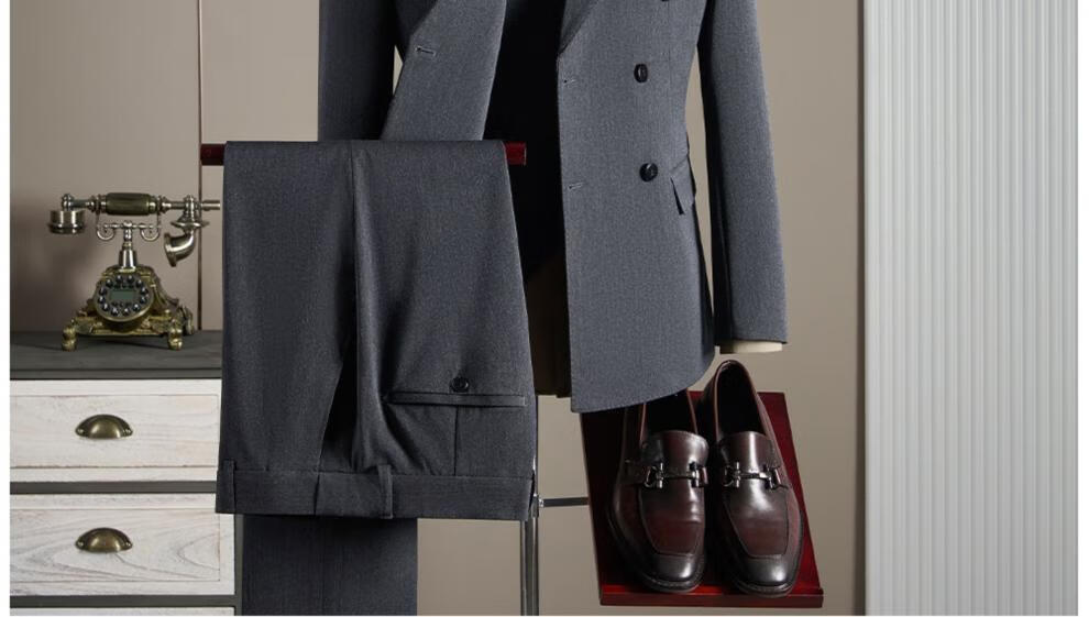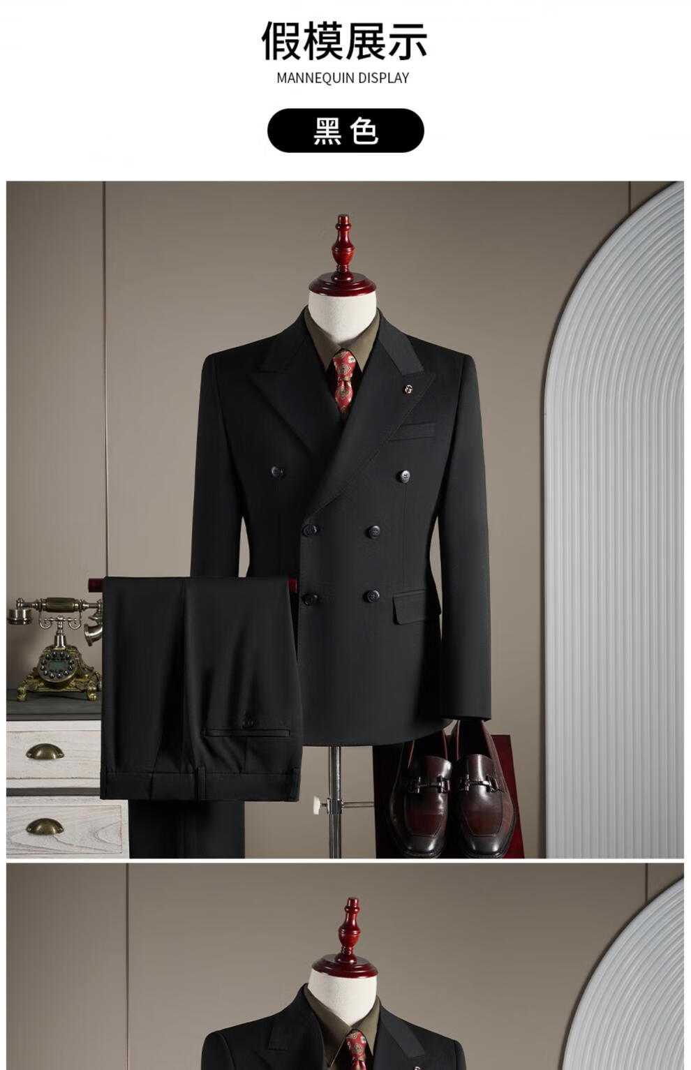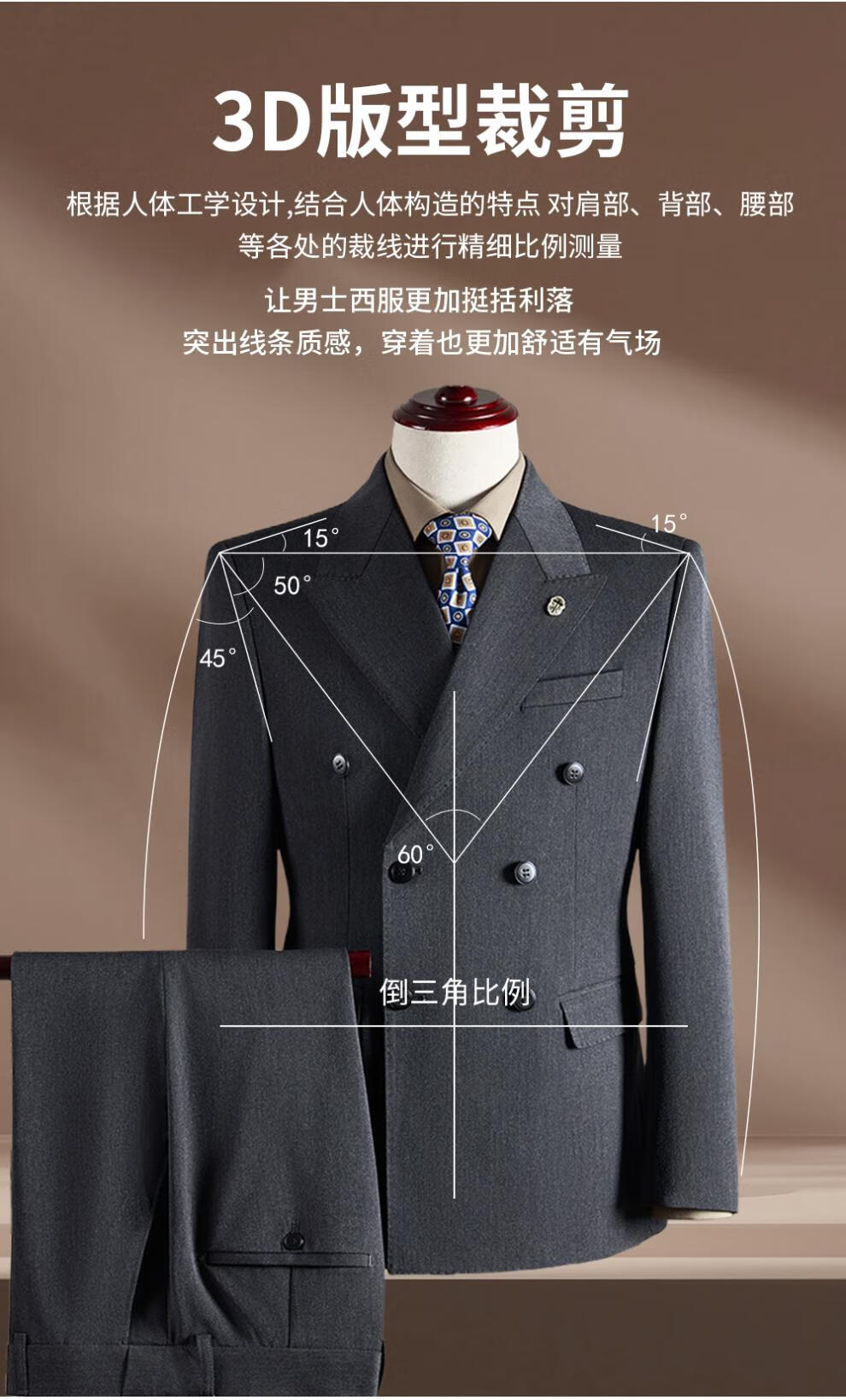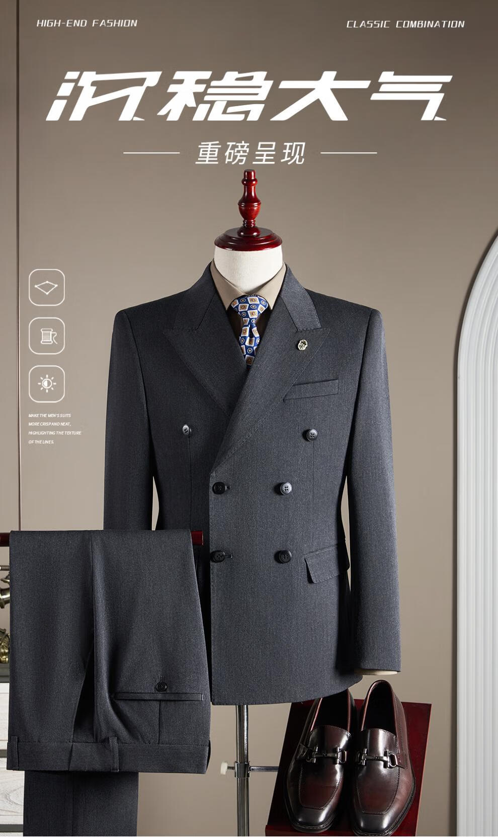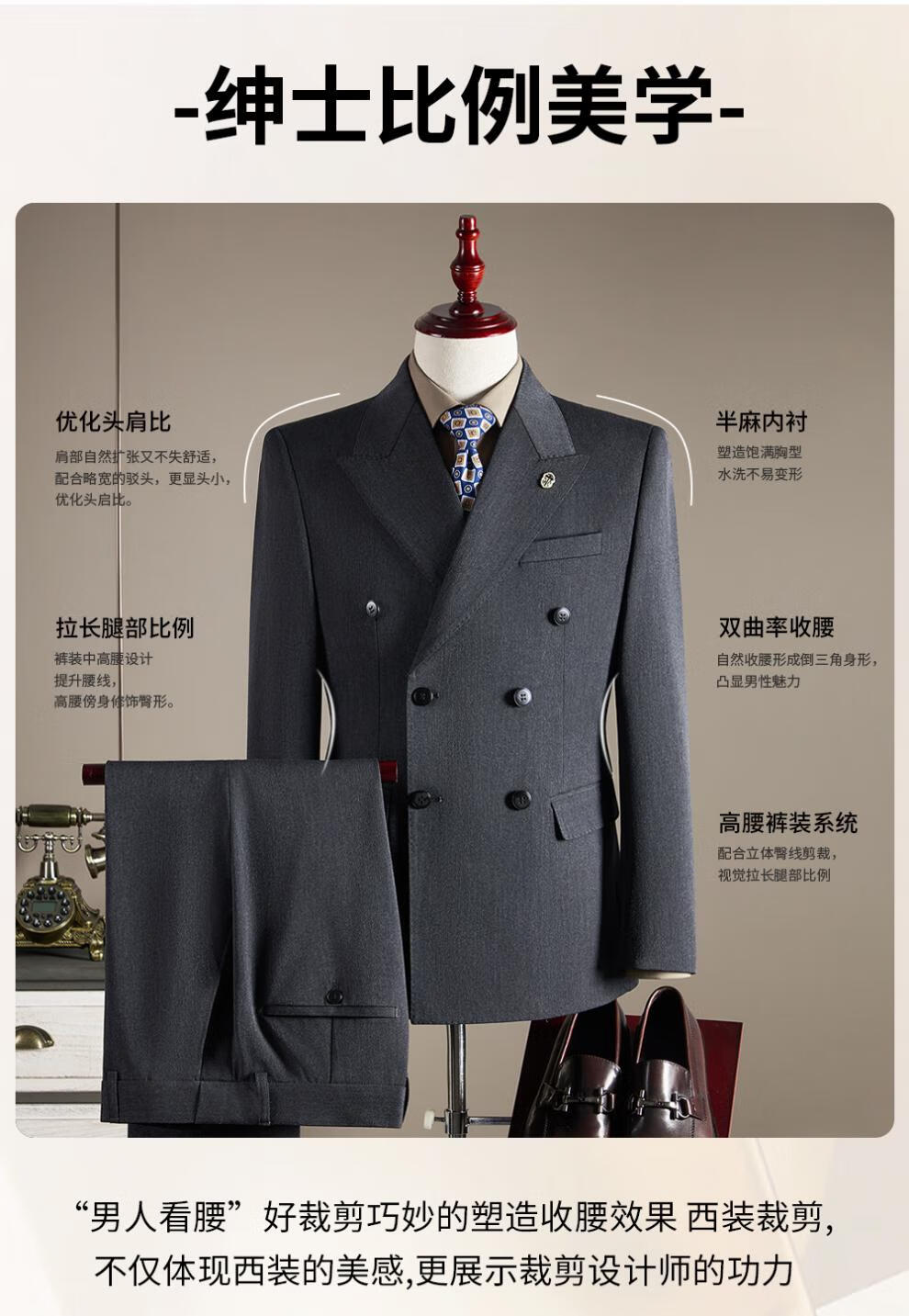 ROMON double-breasted wool suit men's suit business formal high-quality slim large size groom's wedding suit three-piece brown brown single-piece suit M (95-110Jin Jin equals 0.5 kg)