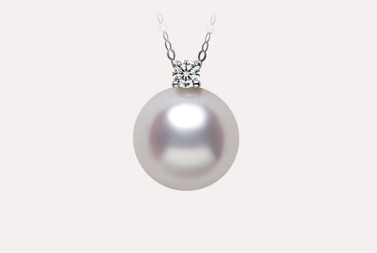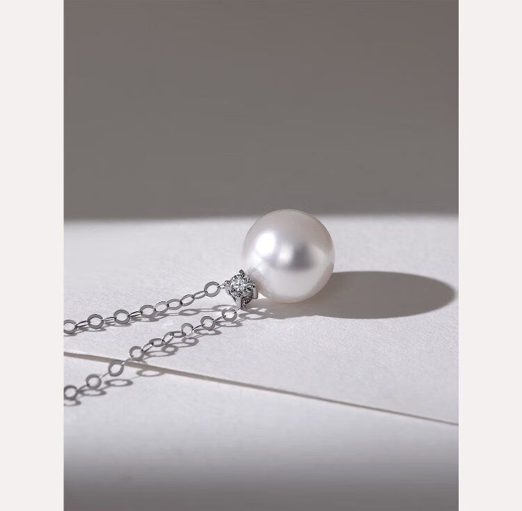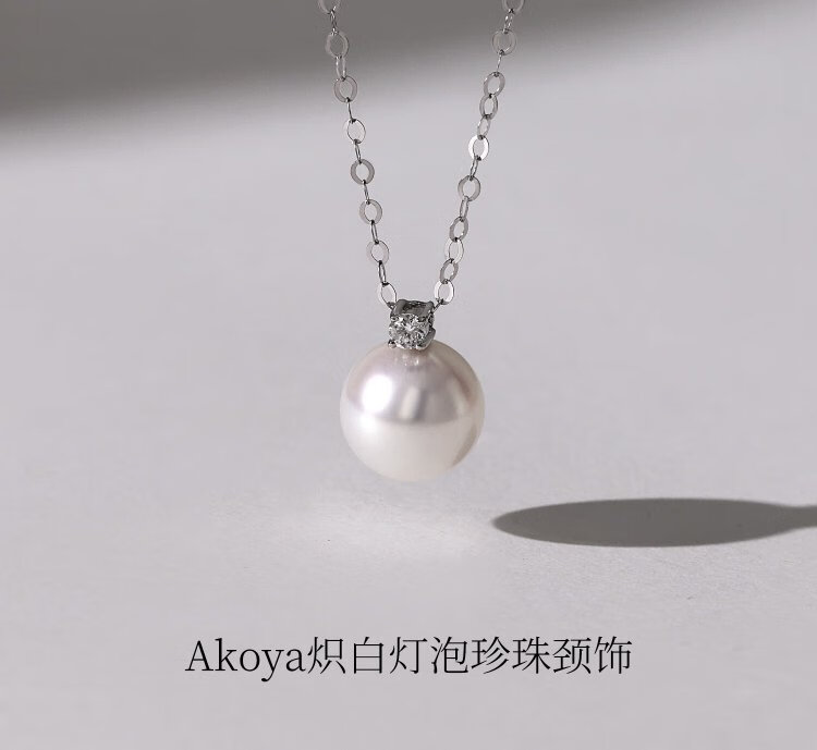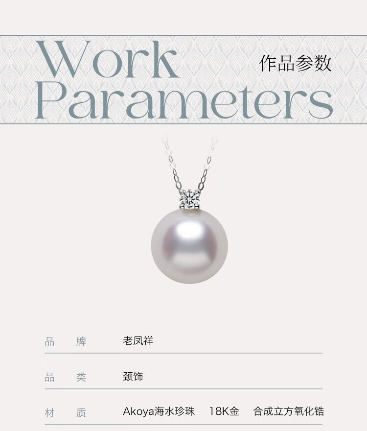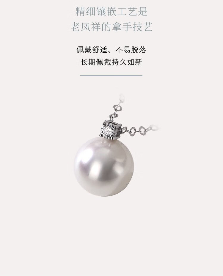 Lao Fengxiang's official Princess Diana Akoya seawater pearl necklace single pendant 18K gold princess clavicle chain jewelry 8.5-9mm S grade/18K gold buckle + S925 silver chain