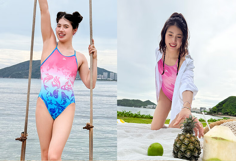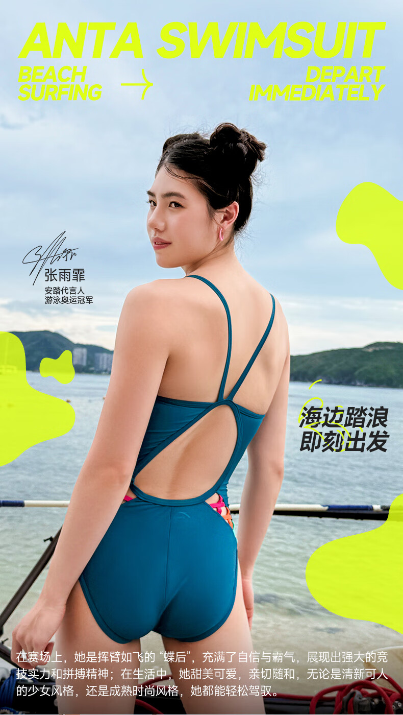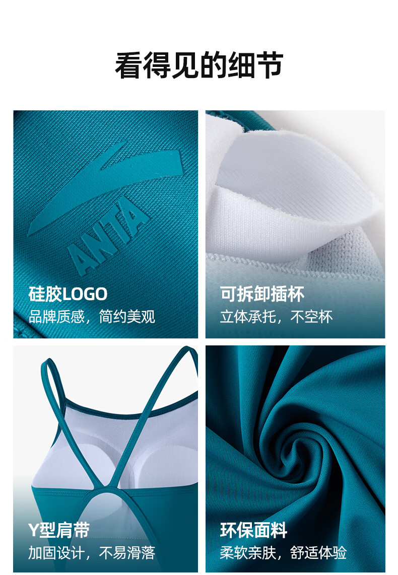 ANTA (ANTA) Zhang Yufei's same style racing swimsuit, swimming pool training, slimming 2025 new women's one-piece swimsuit, green-2 four-piece set, swimsuit + swimming goggles + swimming cap + bag 2XL weight 60-65kg