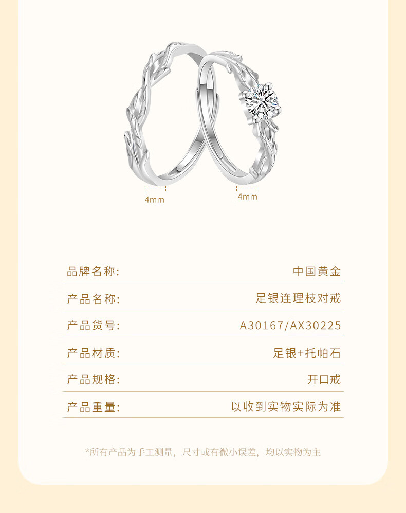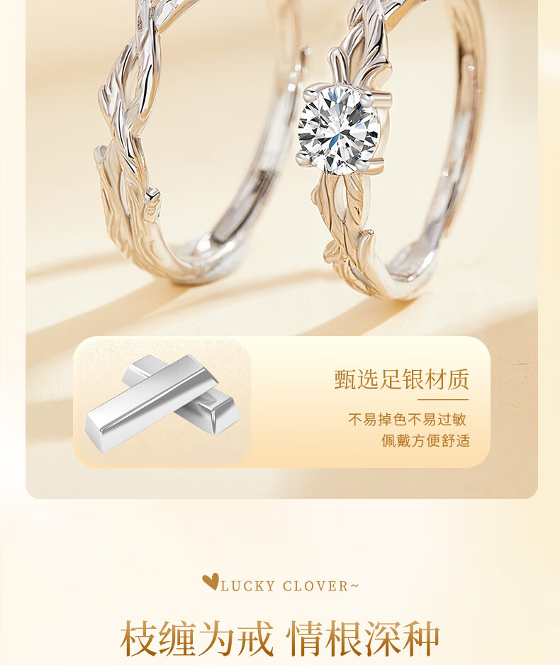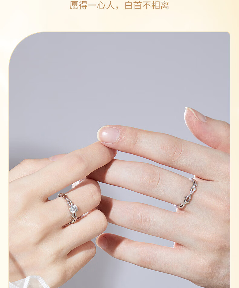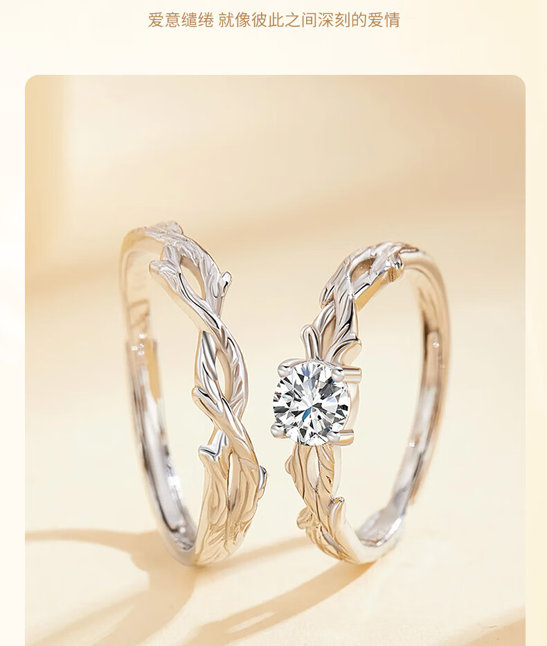 Chinese gold and silver branches with branches and solid silver rings for male and female couples to express love and proposal, birthday gifts for girlfriends and wives for their anniversary, silver and branches with solid silver rings
