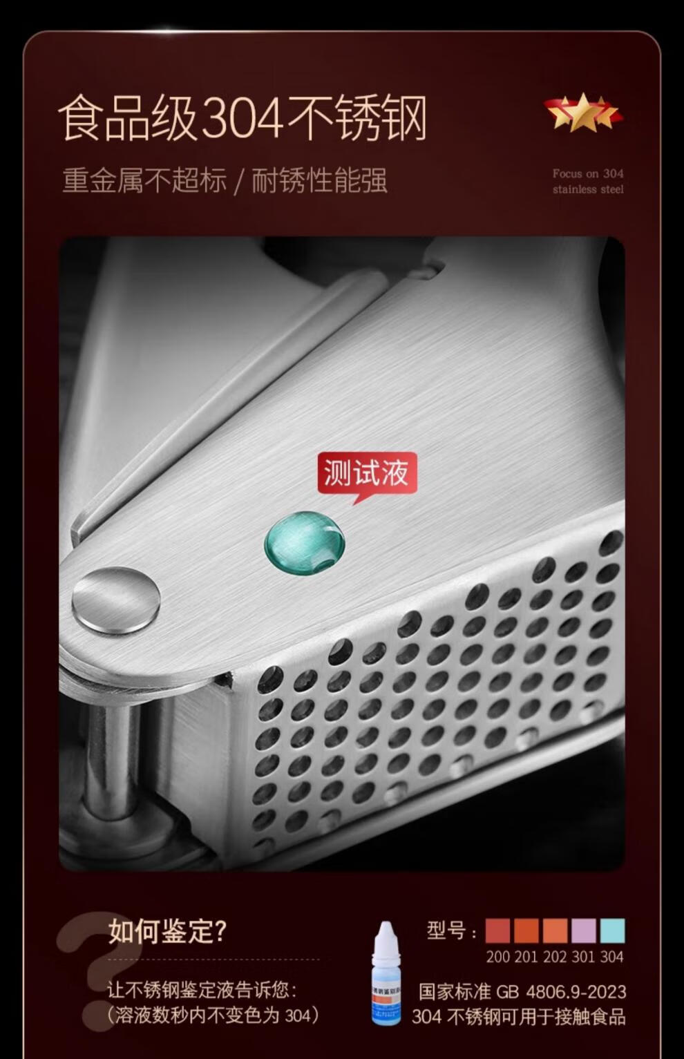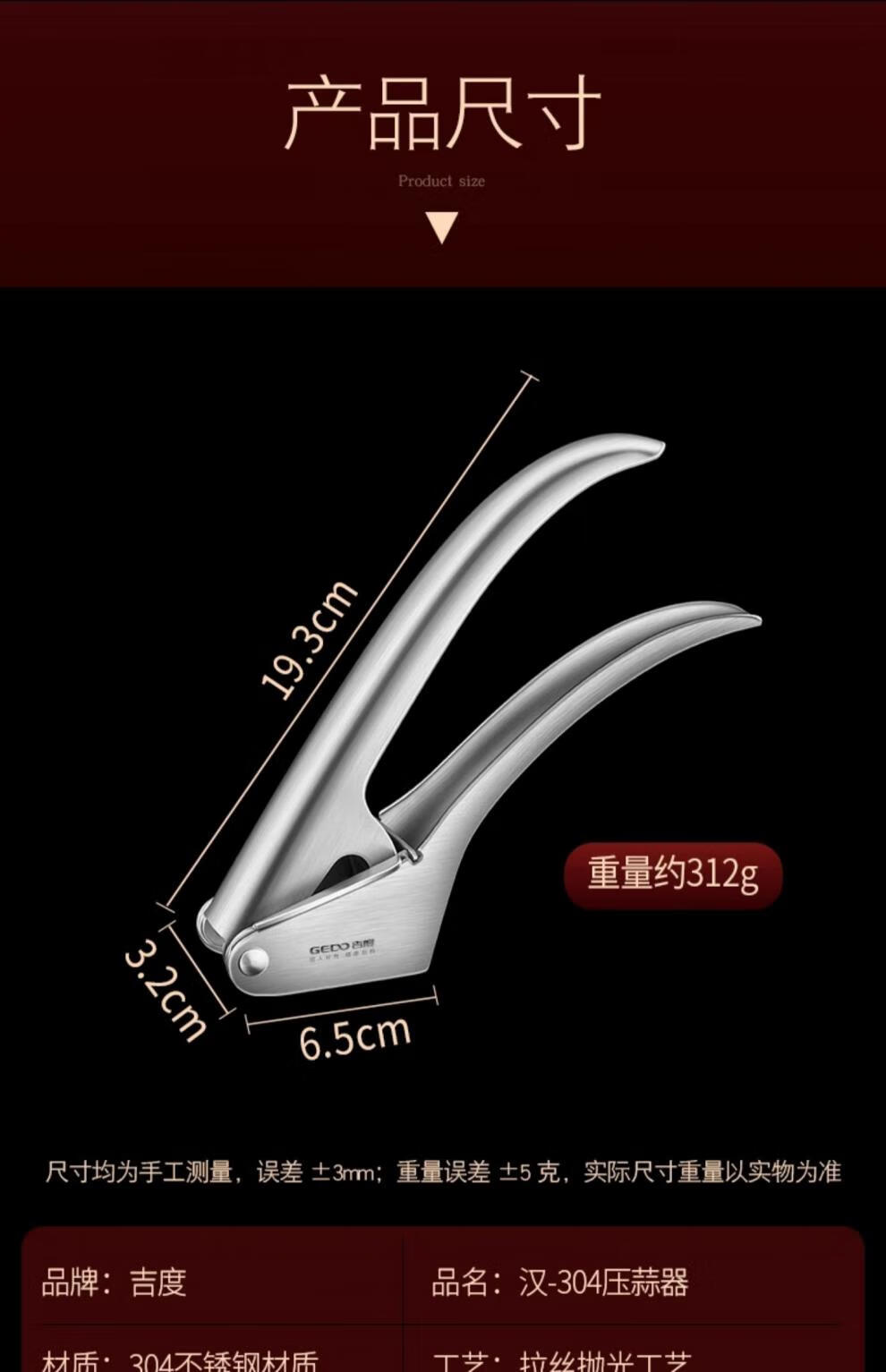 OIMG German 304 stainless steel garlic press garlic squeezer garlic peeling and smashing artifact kitchen manual garlic garlic press real 304 steel garlic press
