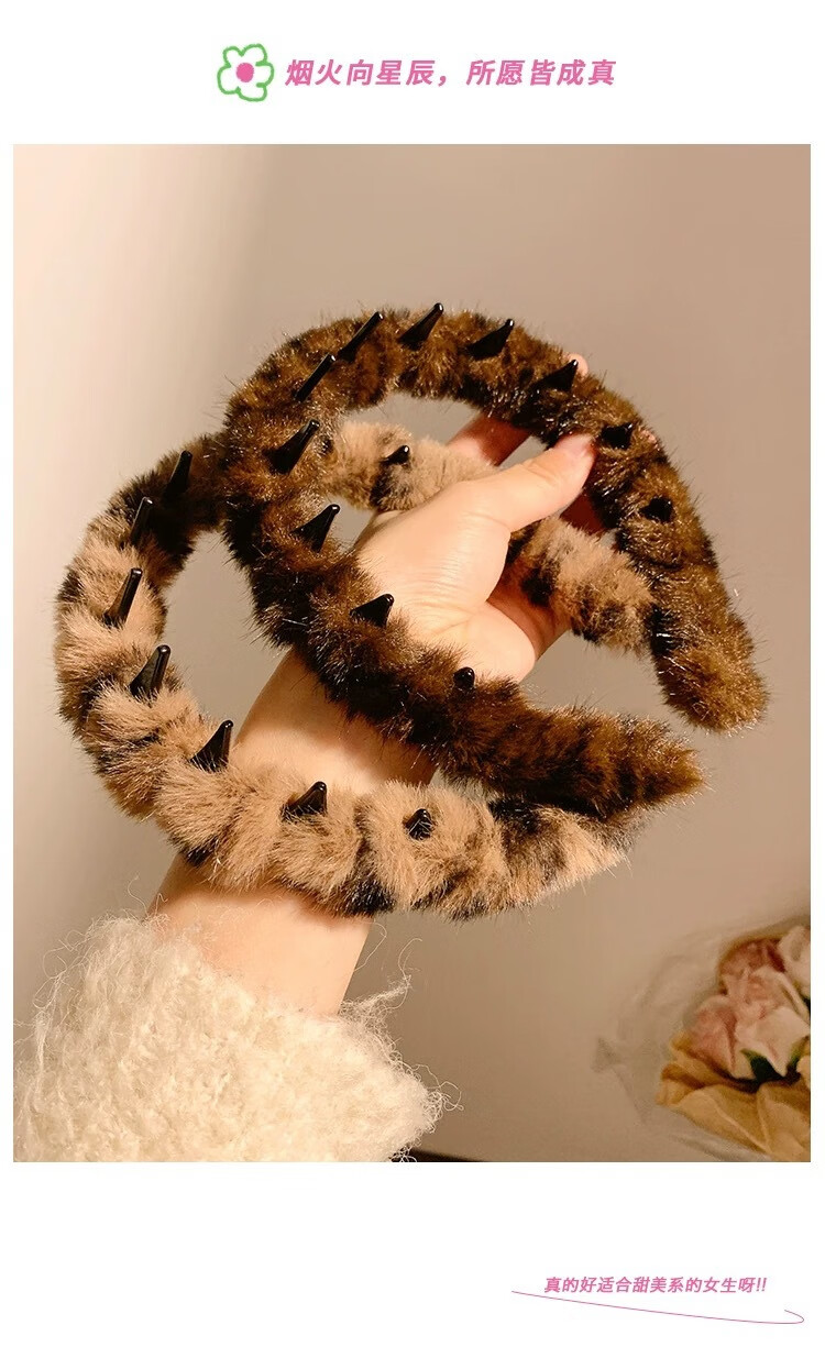 Korean retro leopard print toothed plush hair hoop for women anti-slip face wash hairpin makeup hair accessories headband 2024 autumn and winter leopard print plush toothed hair hoop 3 mixed colors