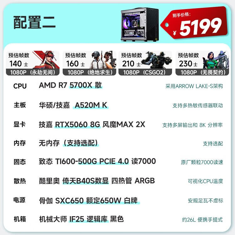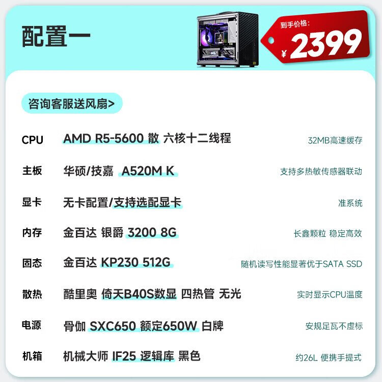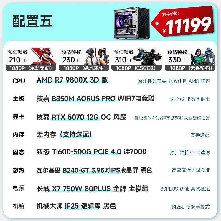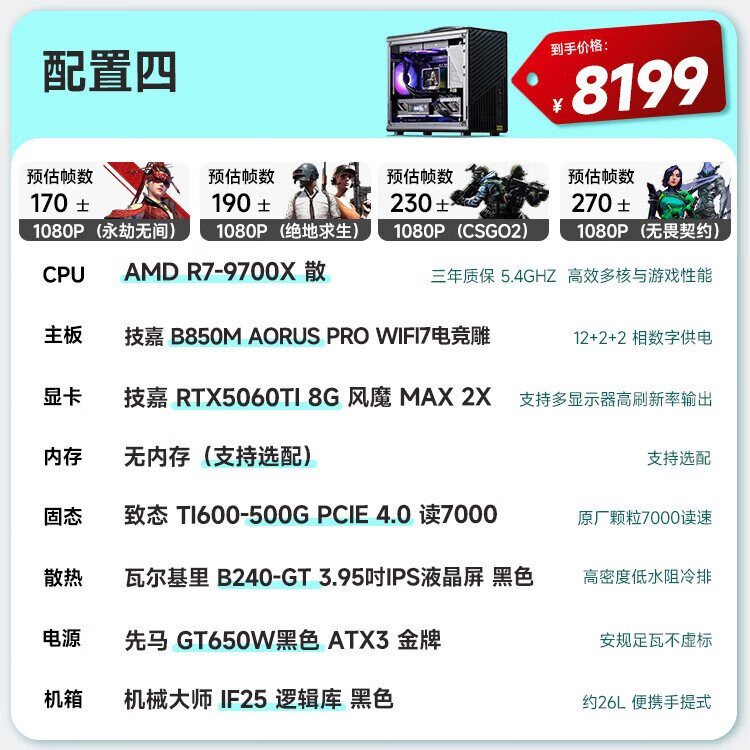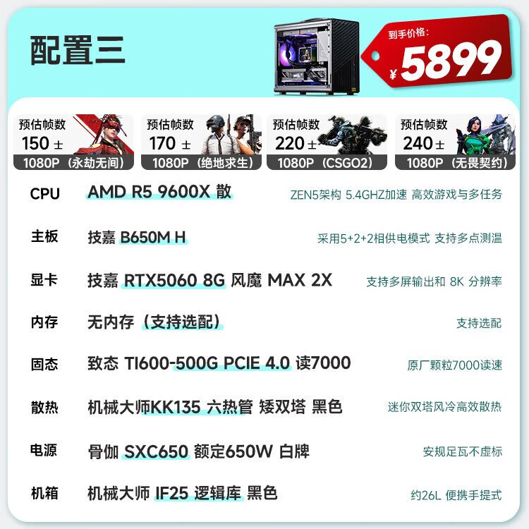 Sugar Cube Mechanical Master Ruilong R5 9600X/9700X/9800X3D/RTX5060Ti graphics card Delta mobile gaming desktop computer complete machine design editing drawing DIY assembly machine Configuration 1丨5600丨Barebones丨No card configuration