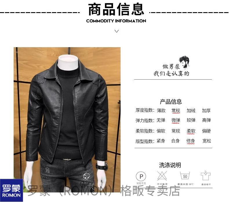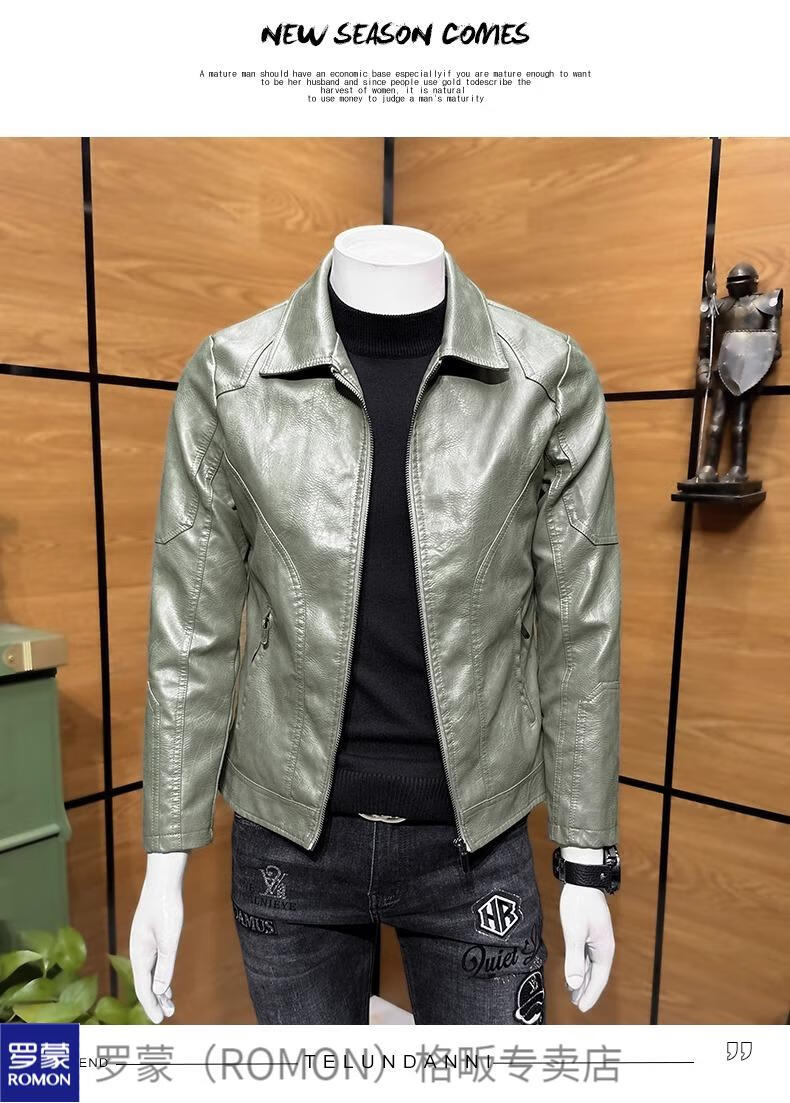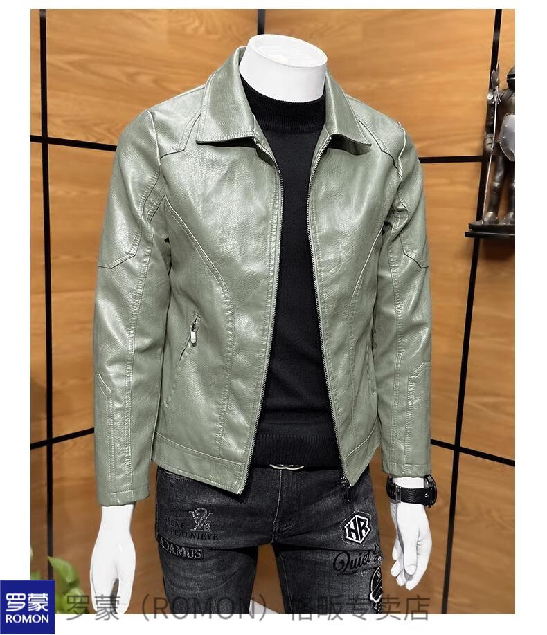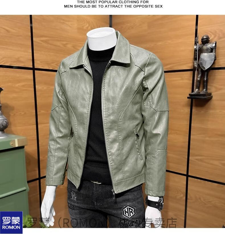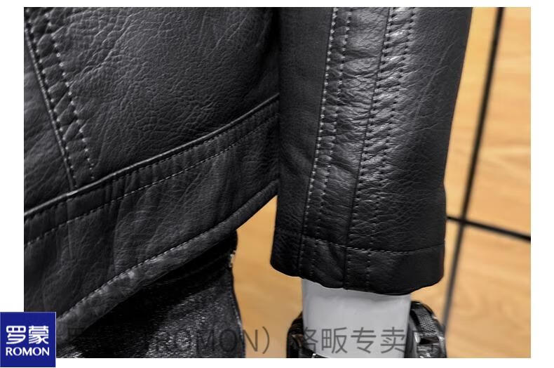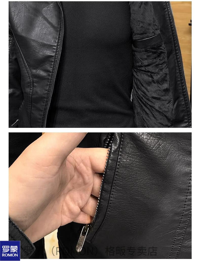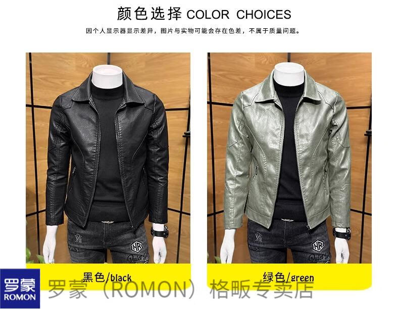 ROMON high-end imitation leather jacket men's lapel spring and autumn short jacket imitation sheepskin motorcycle jacket black regular size M 110Jin Jin is equal to less than 0.5 kg