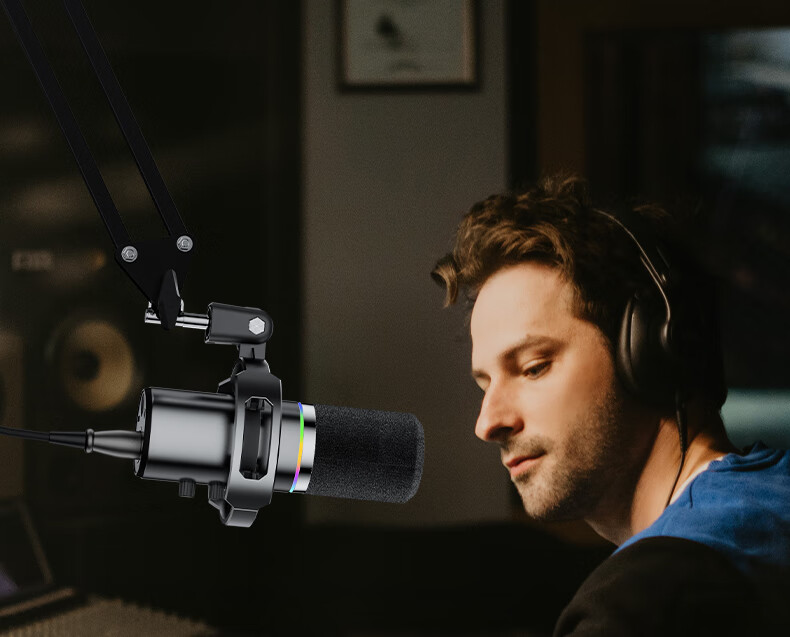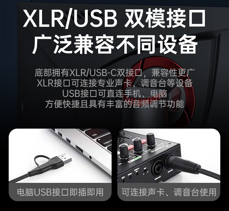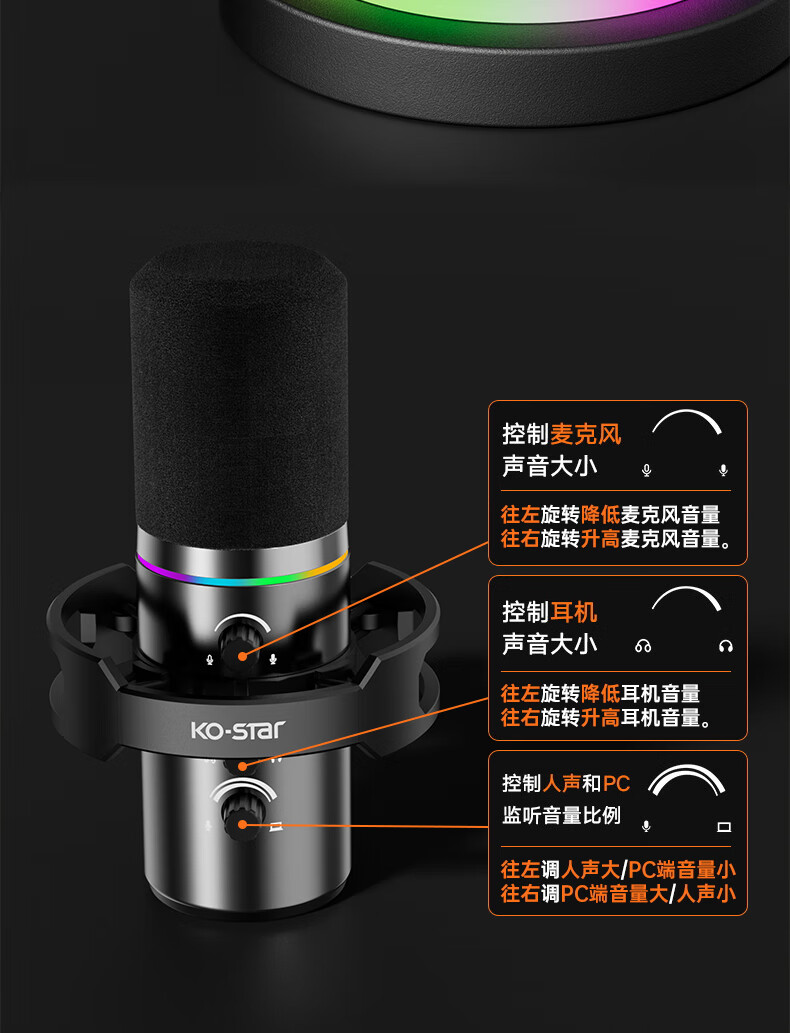 KO-STAR dynamic microphone computer live broadcast microphone built-in sound card live recording dubbing game video conferencing mobile phone radio karaoke USB/XLR device dual-mode anchor dedicated M690 gray cantilever type + one-button noise reduction/mute + RGB breathing light external power supply
