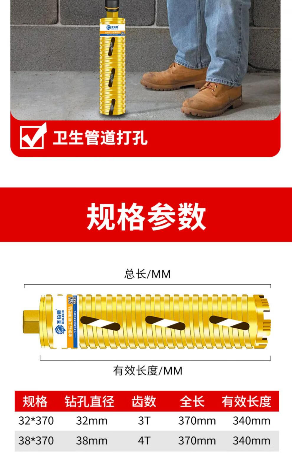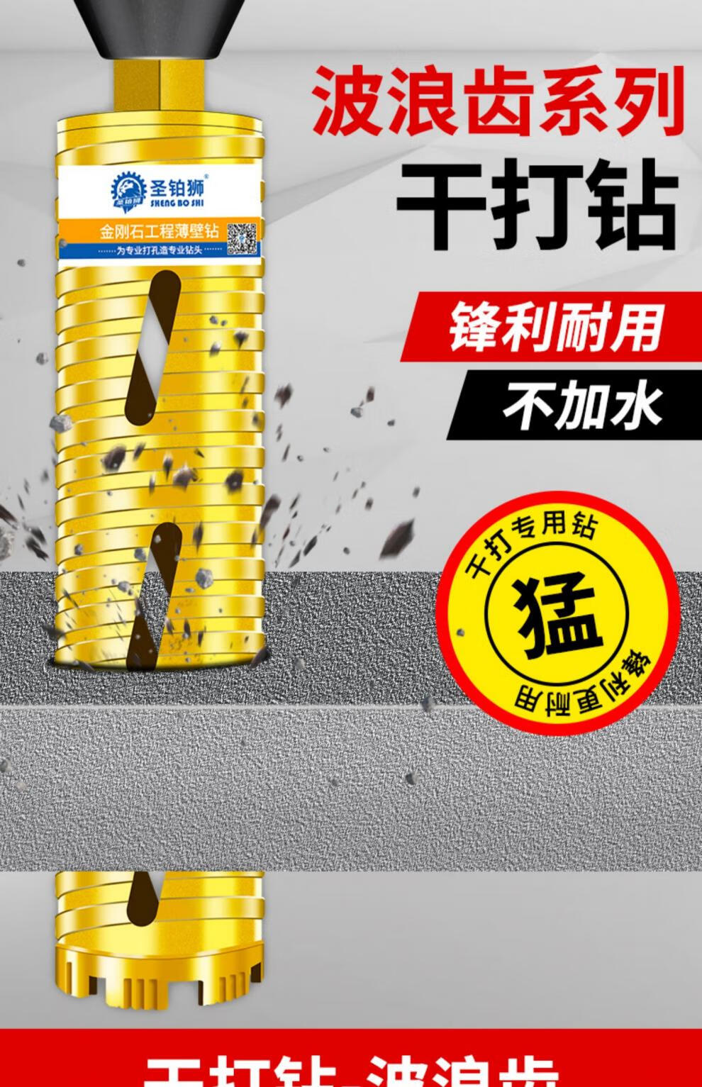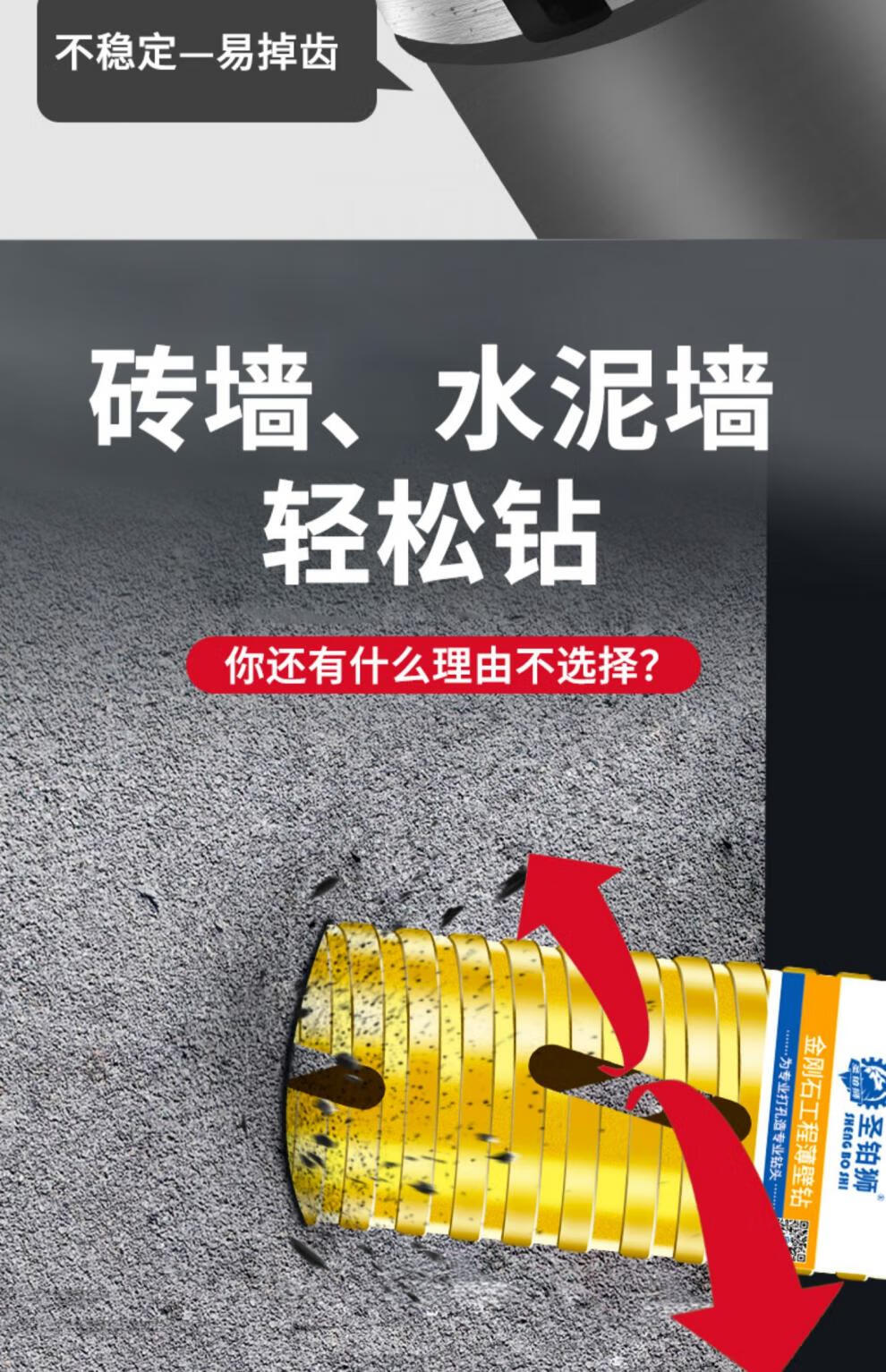 Shengbo Lion Dry Drilling Rhinestone Drill Bit Concrete Wall Without Adding Water Turn Head Fast 63 Air Conditioning Water Drill Rig Hole Opener Dry Drilling 112x350mm_Sharp Grade