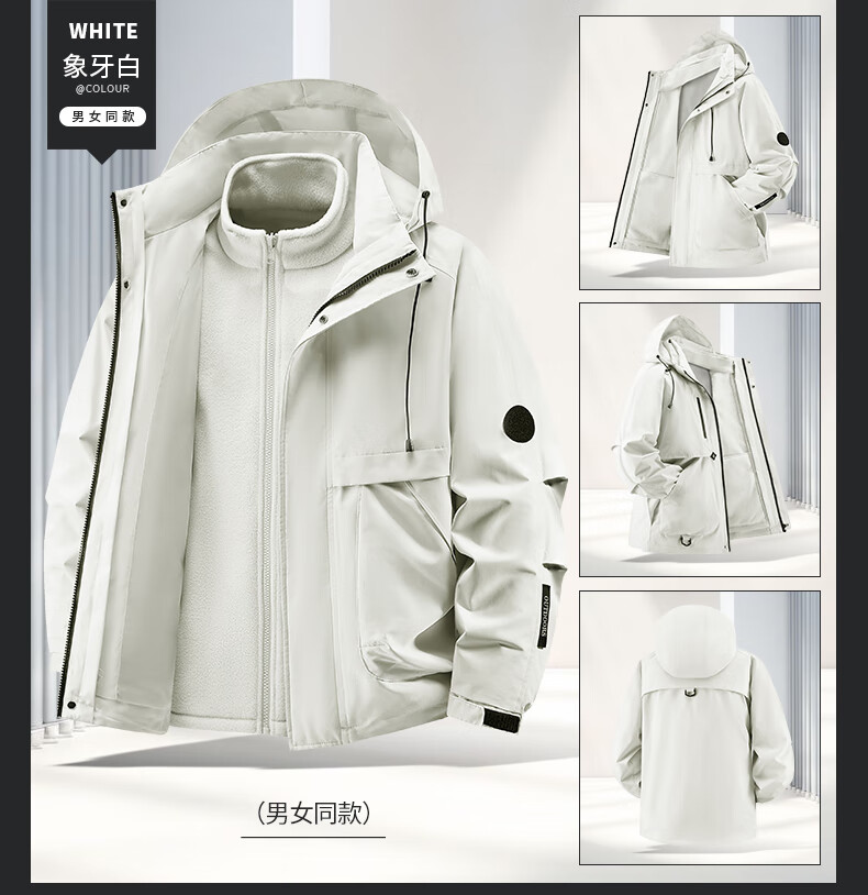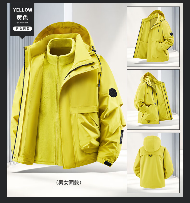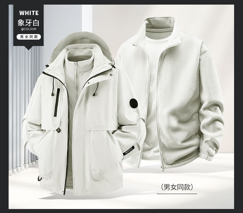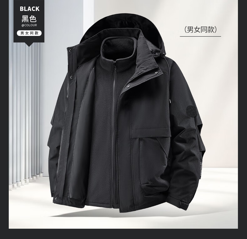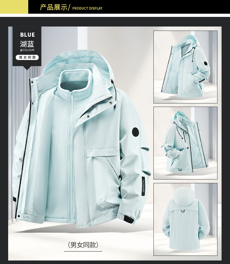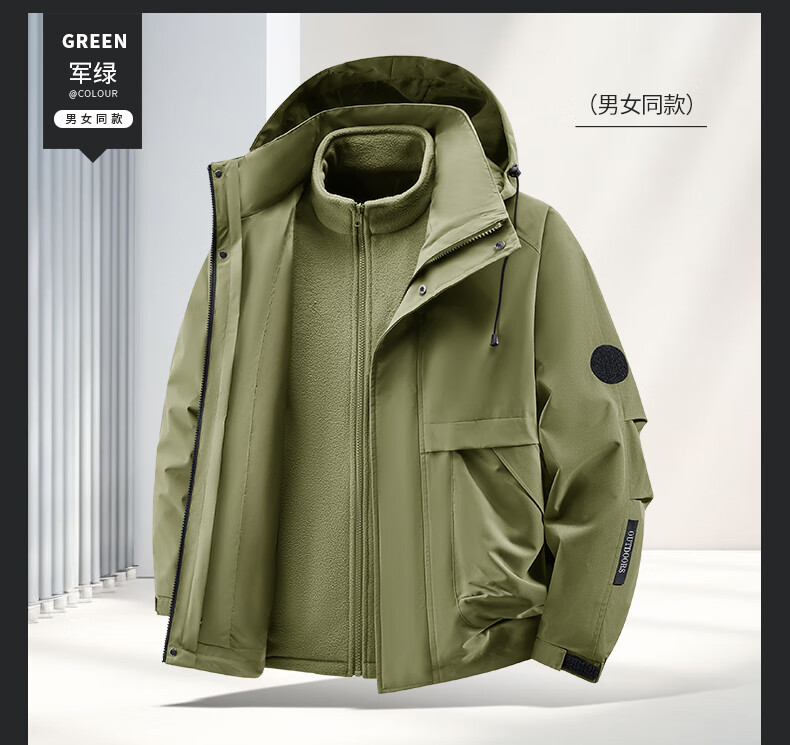 Double warmth, three-in-one jacket, same style jacket for men and women, polar fleece three-proof outdoor mountaineering jacket, military green LW-8858, two-piece set, removable inner liner, M recommendation, 105-125Jin Jin is equal to 0.5kg