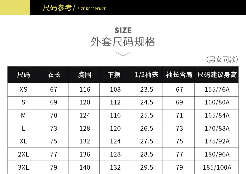 China (cm) 160-165/84-86 165-170 / 88-90 167-172 / 92-96 168-173 / 98-102 170-176 / 106-110