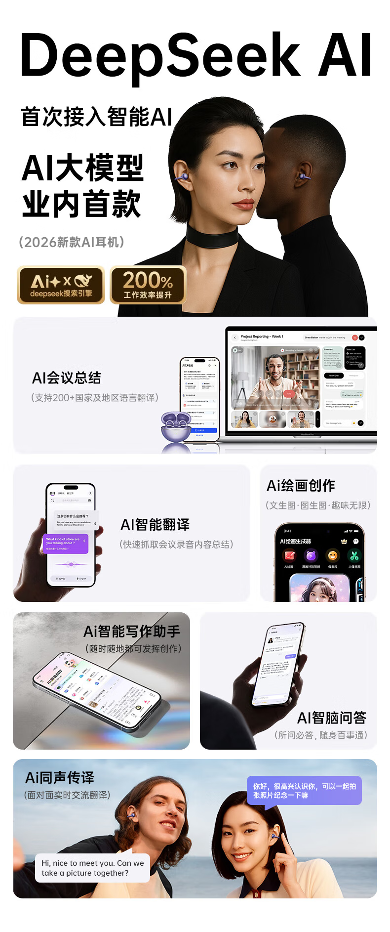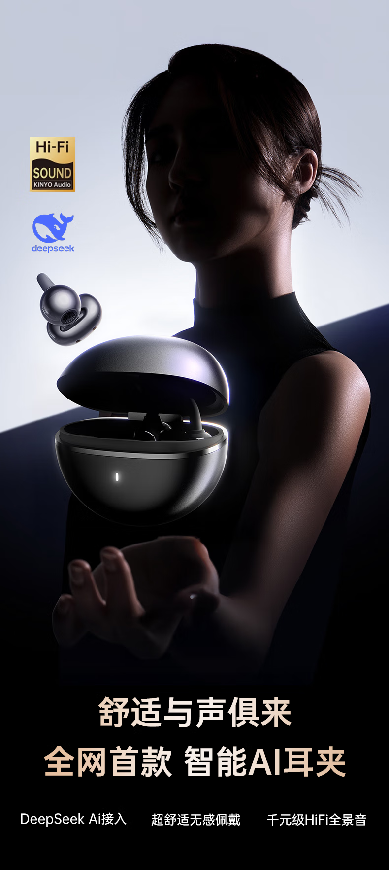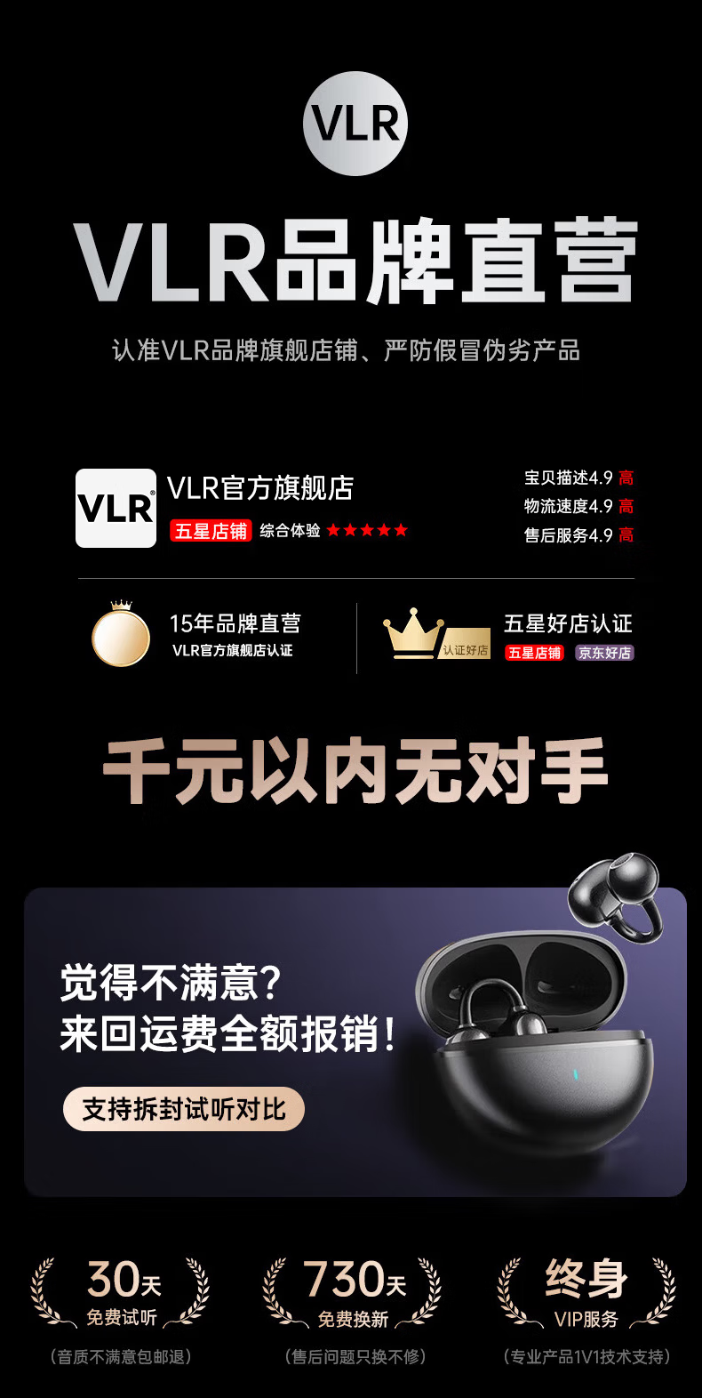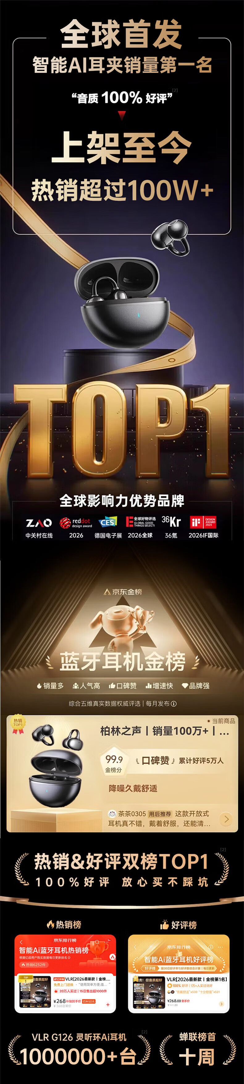 VLR 2026 national supplementary model丨No. 1 on the gold list Voice of Berlin 2025 clip-on Bluetooth headset bone conduction translation wireless intelligent open-type non-in-ear gift supports simultaneous translation丨New Year's best-selling model Endless black spatial sound effect/AI call noise reduction/real-time translation