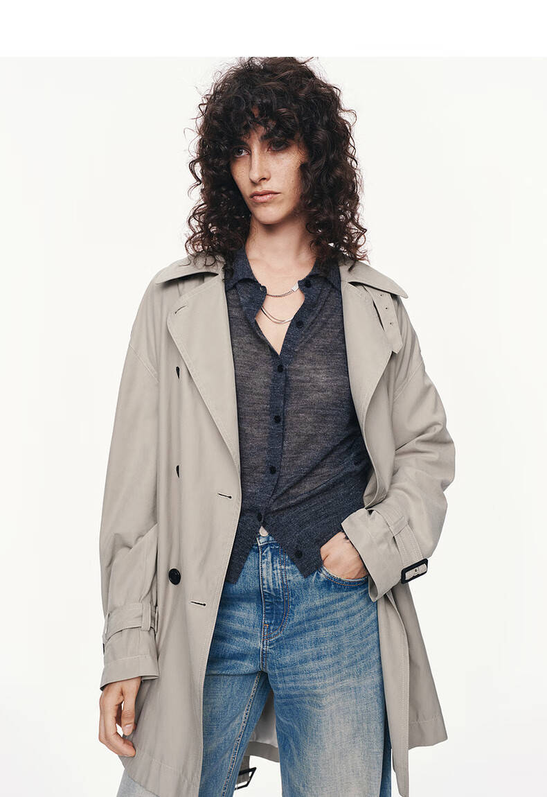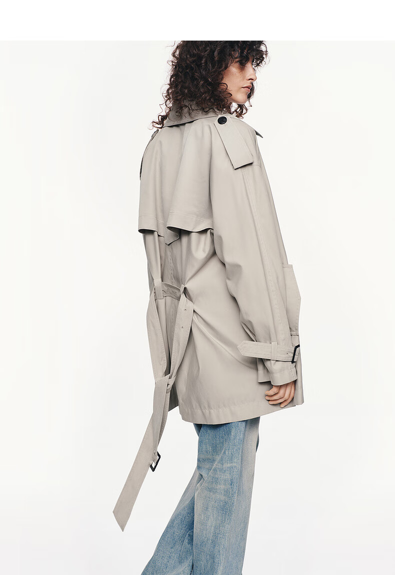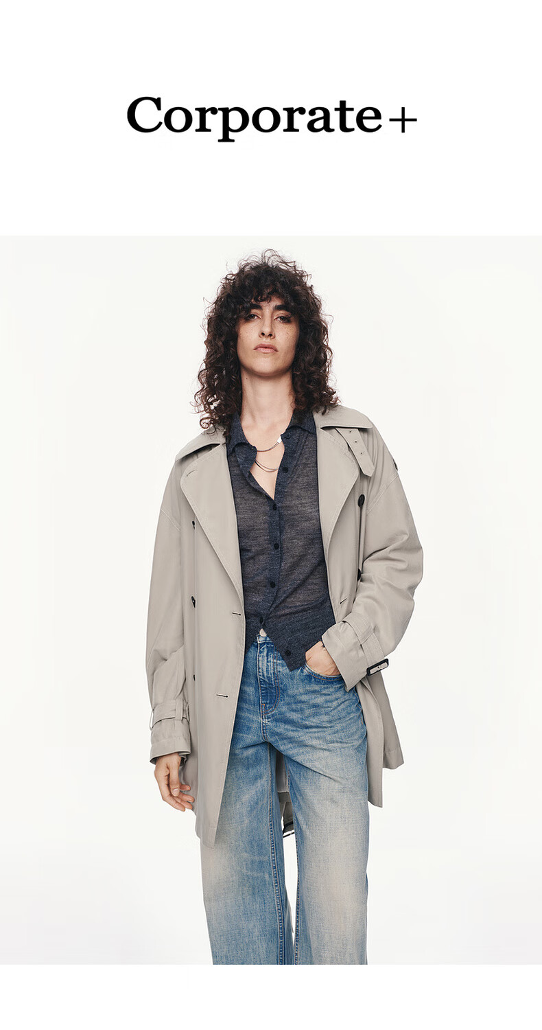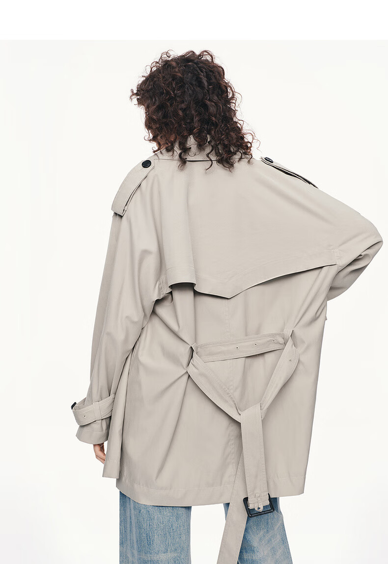 MO&Co. C+ Series Windbreaker 2025 Autumn New Loose Jacket Independent Bracelet Belt MBE3TRC002 Gravel Color S /160