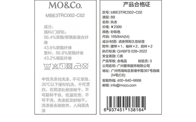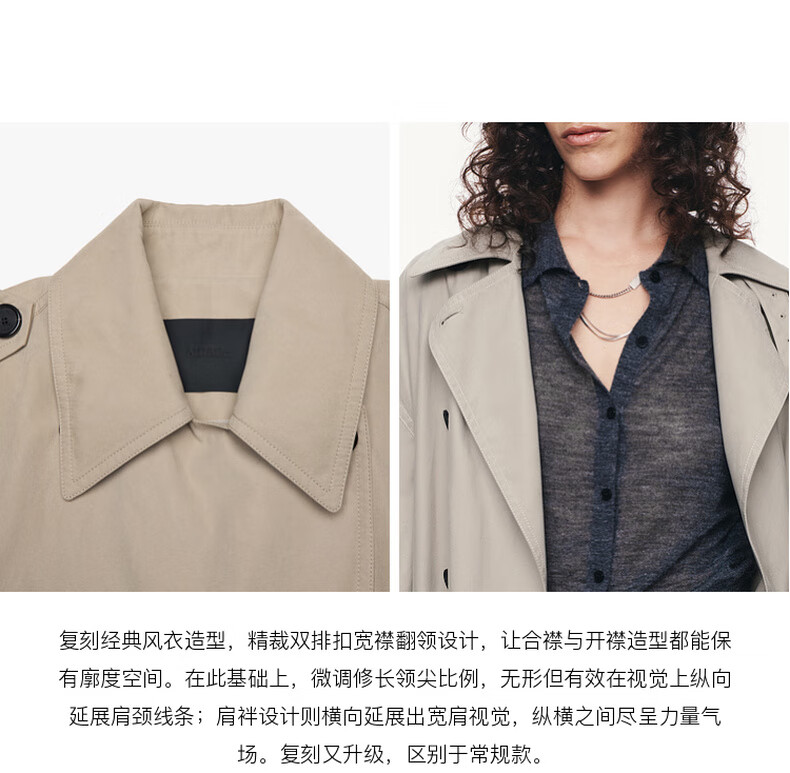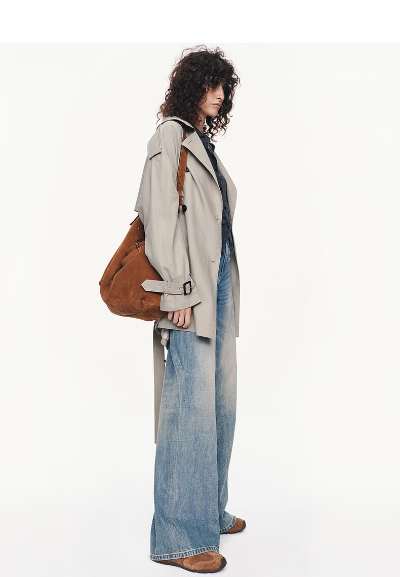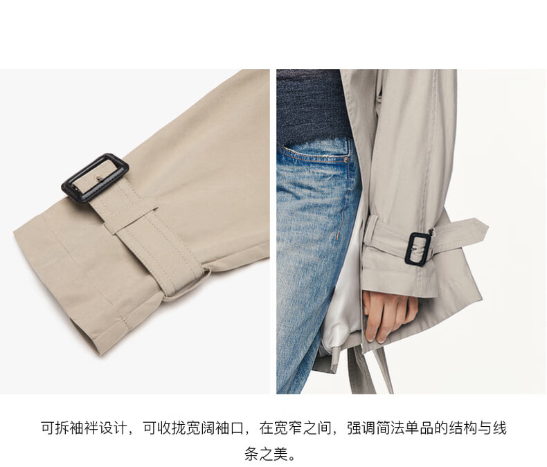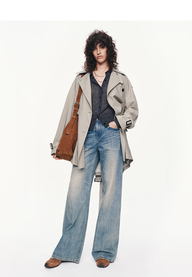 MO&Co. C+ Series Windbreaker 2025 Autumn New Loose Jacket Independent Bracelet Belt MBE3TRC002 Gravel Color S /160