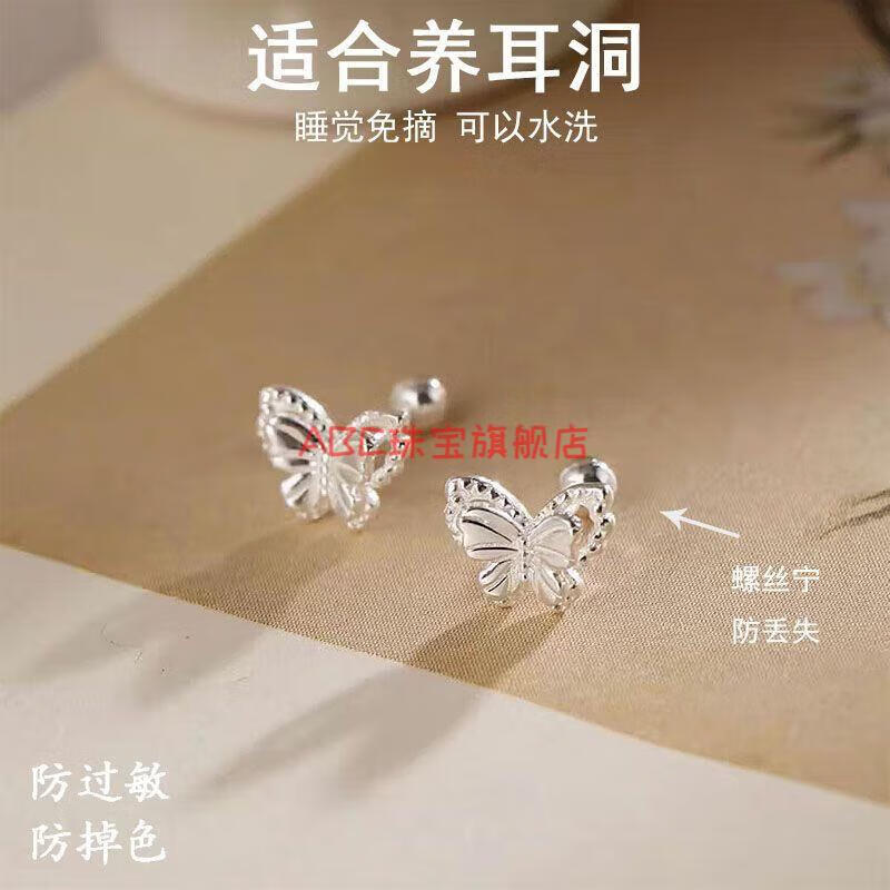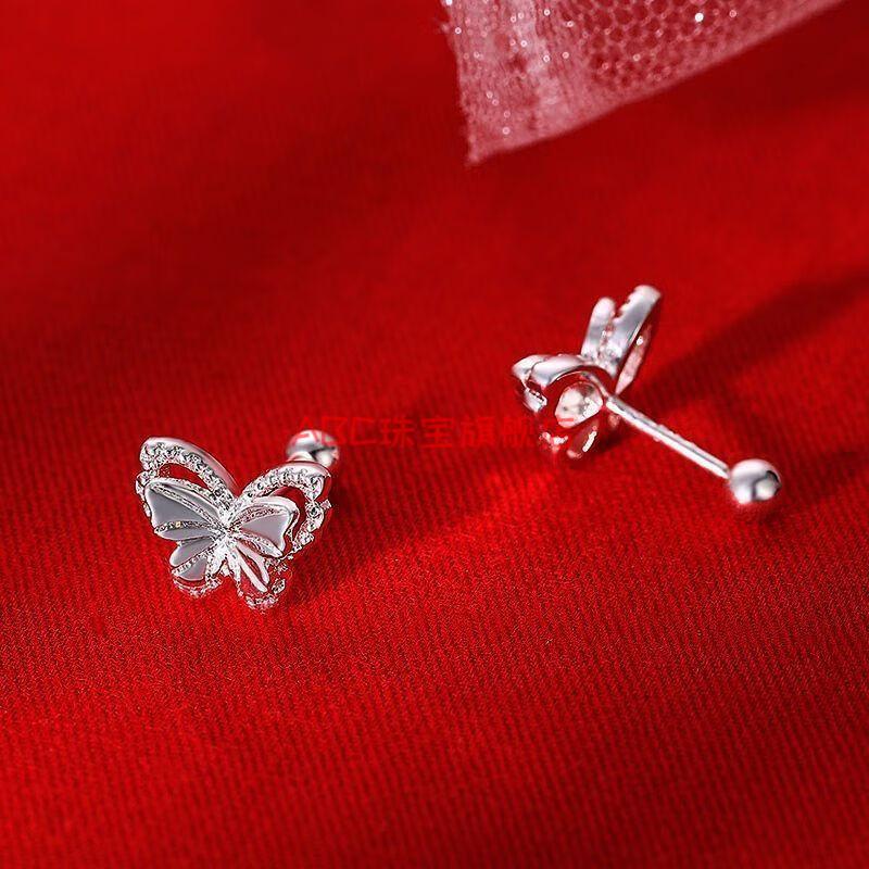 ABC Old Phoenix 999 sterling silver pure silver earrings spiral earrings butterfly earrings niche screws Sen series ins screw buckles double texture butterfly pair antioxidant material