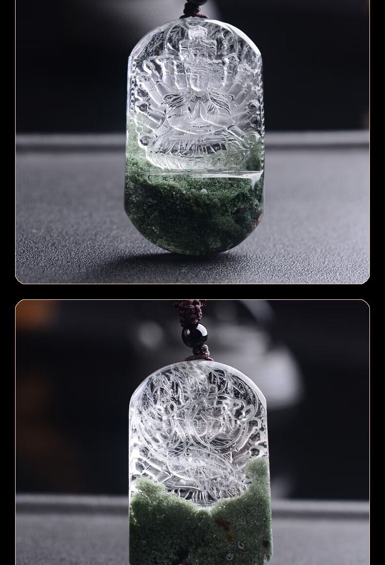 TCT Green Ghost Thousand-Hand Avalokitesvara Pendant Zodiac Rat Native Buddha Dark Green Necklace