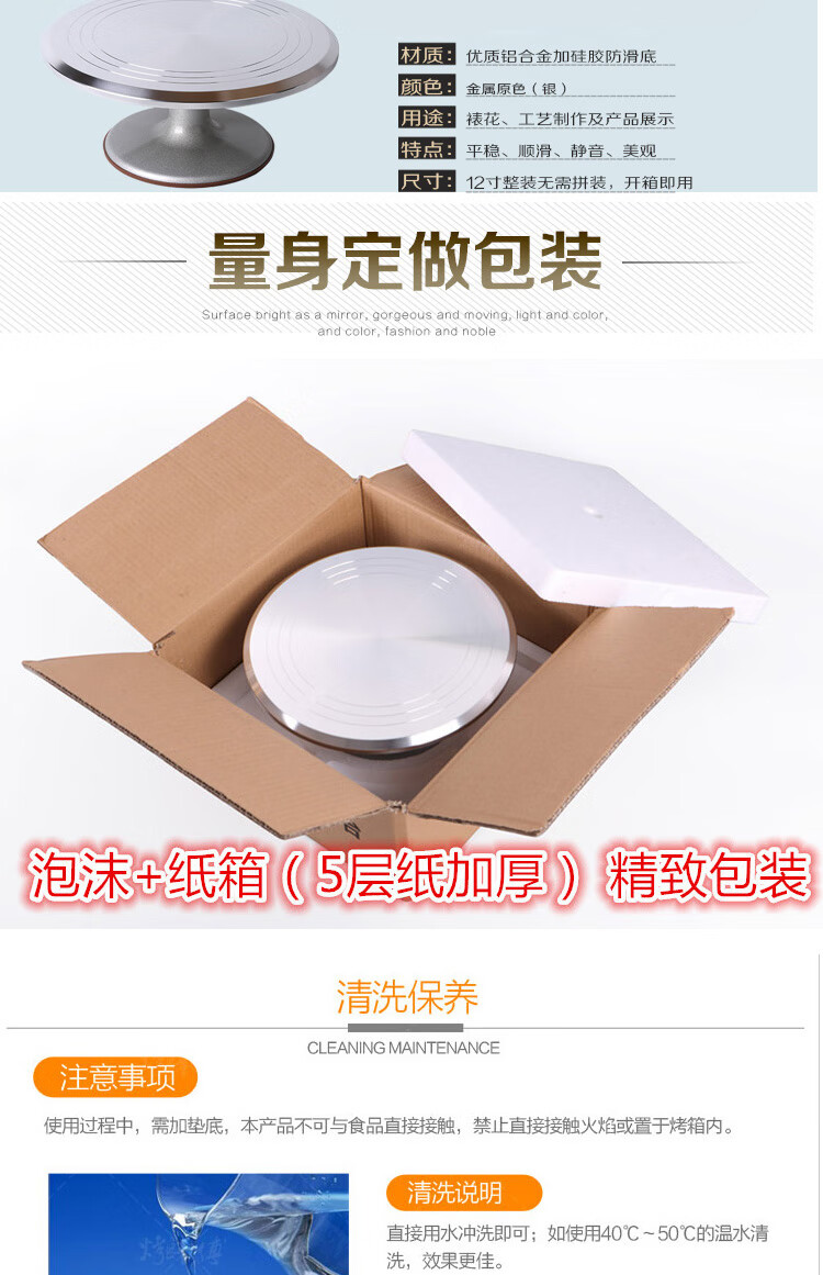 Huaiyin decorating table aluminum alloy turntable cake turntable with anti-slip ring baking decorating tool food grade cake decorating table 12-inch turntable single single