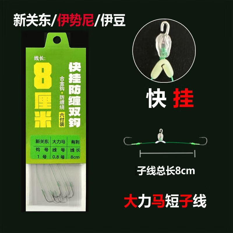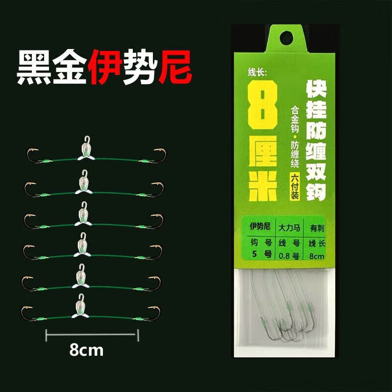 MPPMCK 8cm quick-hanging mud carp short sub-line double hook Meizhou fishing method Iseni New Kanto Izu fish hook strong horse hook 8 Iseni No. 3 barbed quick-hanging cm short 1 plate 6 pairs in total