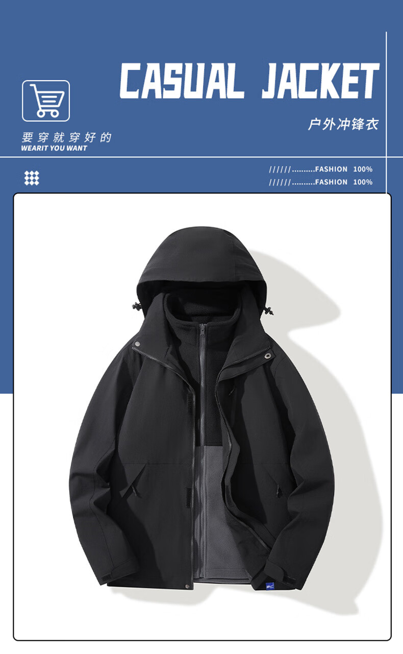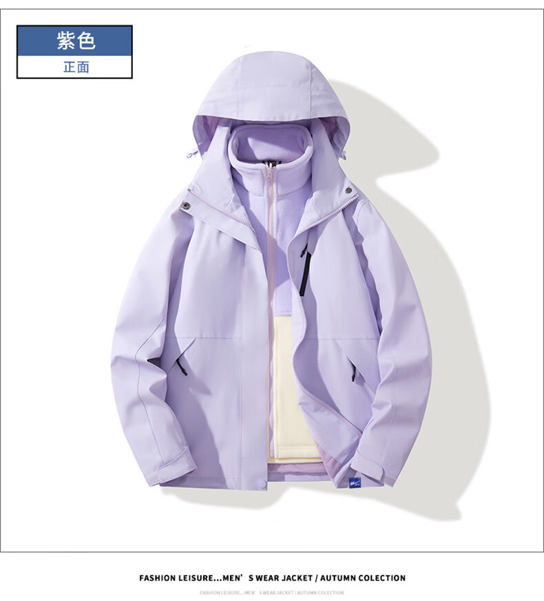 Pullover jacket for men and women in autumn and winter 2025 new three-in-one warm Tibetan sports windbreaker jacket HL-F159 purple/three-in-one upgraded model M 115-130Jin Jin is equal to 0.5 kg