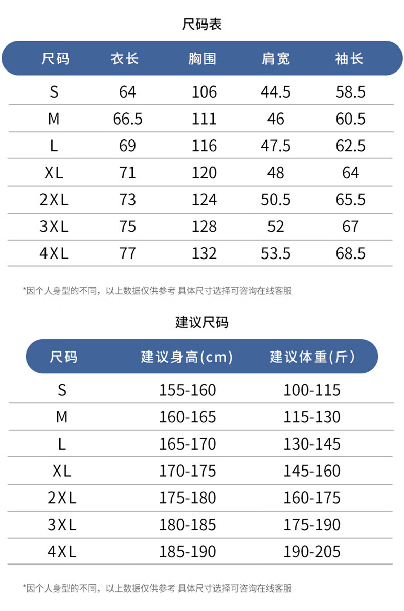 China (cm) 165 / 88-90 170 / 96-98 175 / 108-110 180 / 118-122 185 / 126-130