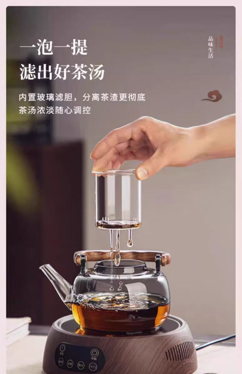 Meikejie glass teapot high temperature resistant thickened tea boiler electric ceramic stove household lifting kettle for boiling water and making tea kettle 2025 new model Muhe lifting kettle - 1L