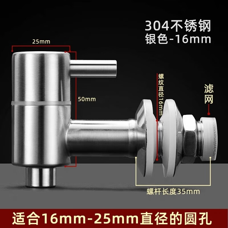 Qinkai glass wine bottle faucet 304 stainless steel faucet wine jar copper faucet wine tank barrel valve switch T-shaped 304 stainless steel faucet 16mm (16-20 holes)