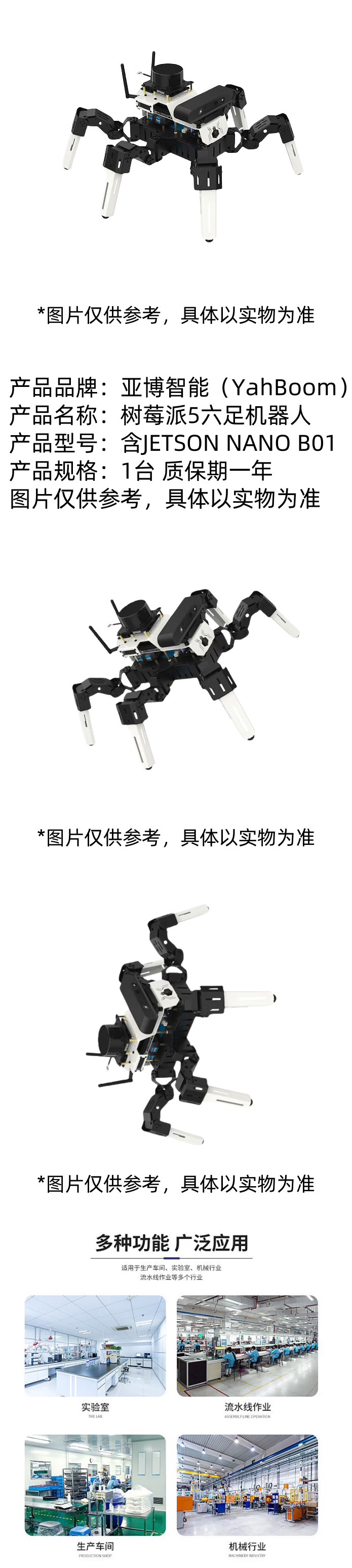 YahBoom Raspberry Pi 5 six-legged robot with JETSON NANO B01, one-year warranty, 1 unit