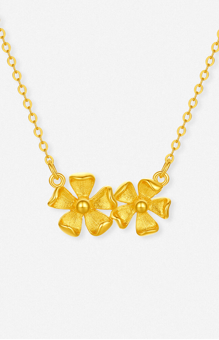 Saturday Lucky Yellow 18K Gold Necklace Women's Flower Pendant Simple, Low-key, Luxurious Holiday Gift for Girlfriend Necklace (40+5cm adjustable)