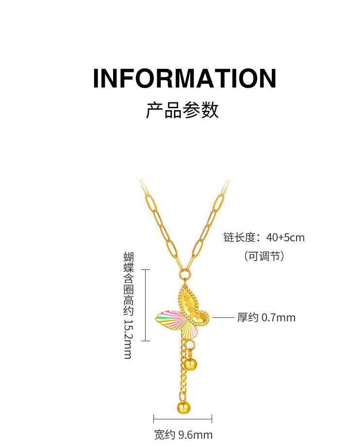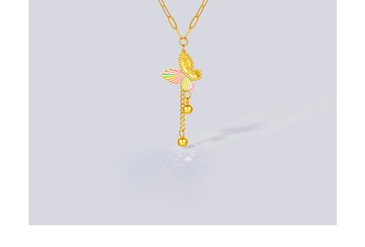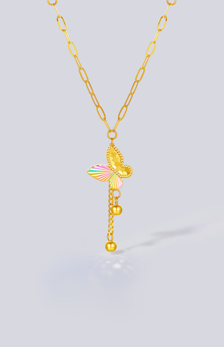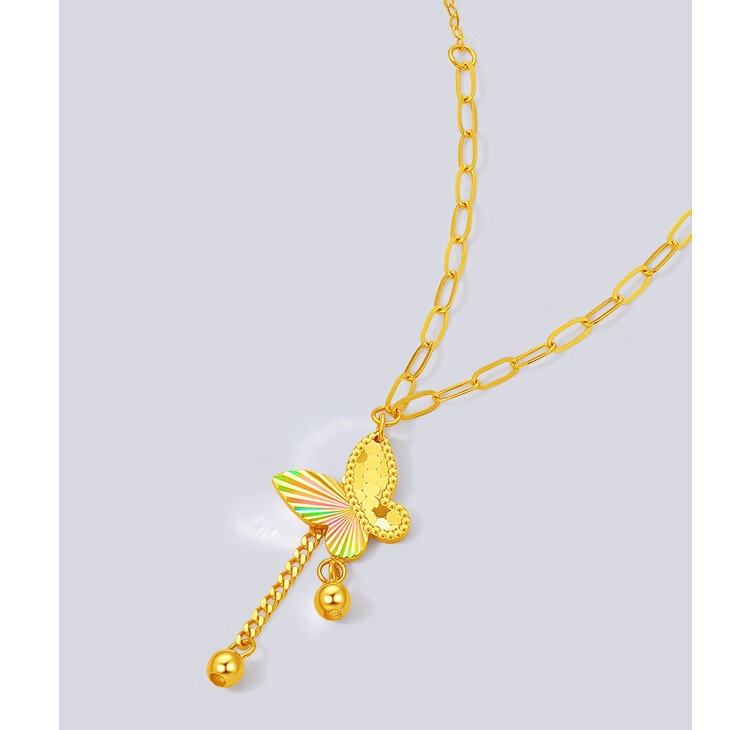 Saturday Lucky Yellow 18K gold necklace for women, colorful bow pendant, light luxury niche, holiday gift for girlfriend, necklace (40+5cm adjustable)