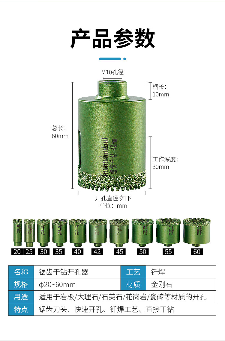 Chuanxing sawtooth hole opener tile drilling drill bit marble stone countertop drilling brazing dry angle grinder special sawtooth dry drill 20MM