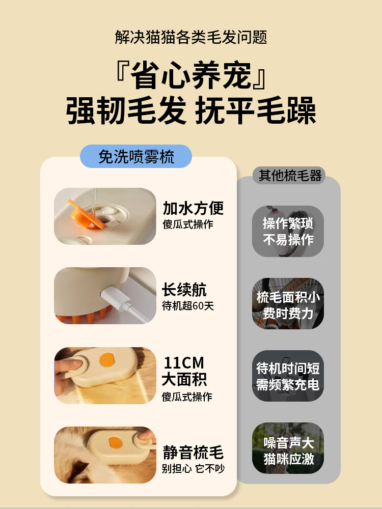 Pet spray massage artifact for cats and dogs to remove floating hair and prevent flying hair, cat comb, cat hair comb, bath brush, cleaning supplies, pet massage comb - white - 1 piece