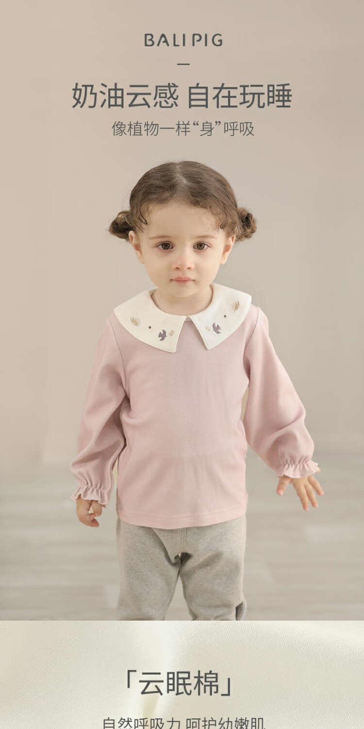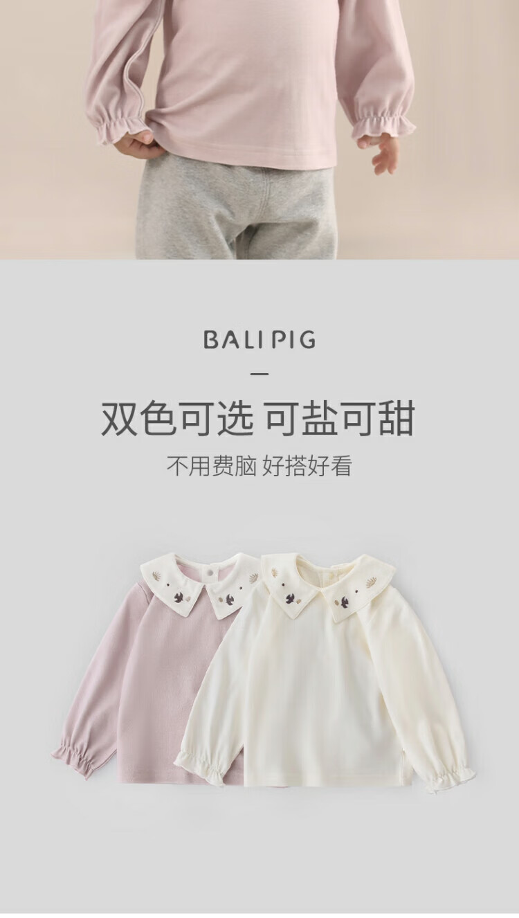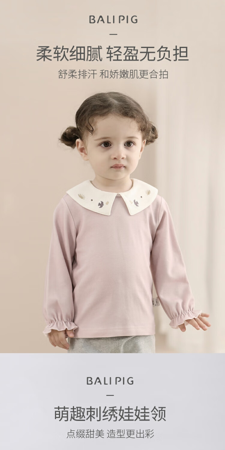 Bali Piggy Girls' Tops Spring and Autumn Modal Children's T-Shirts Infants and Toddlers Sweet and Cute Doll Collar Tops Autumn Baby T-Shirts Beige 100