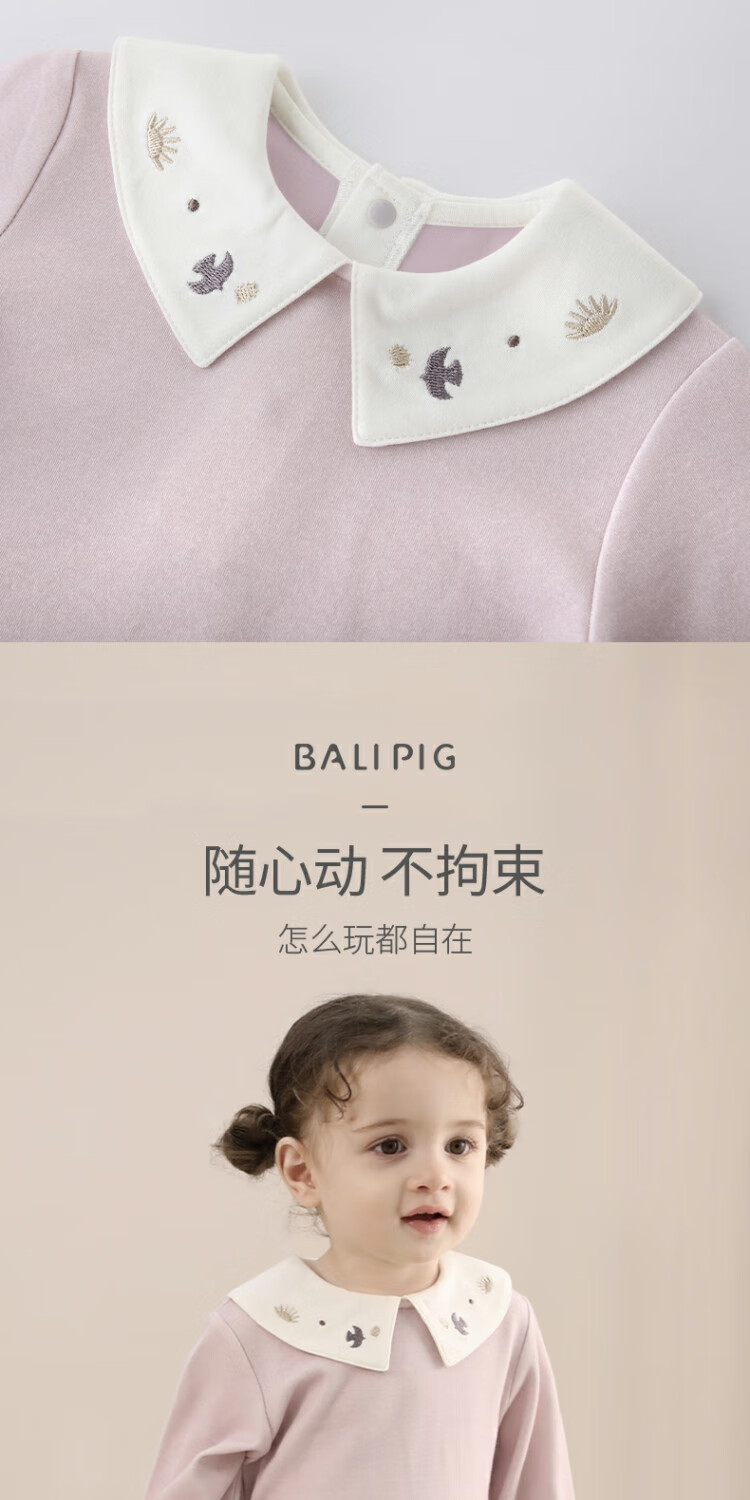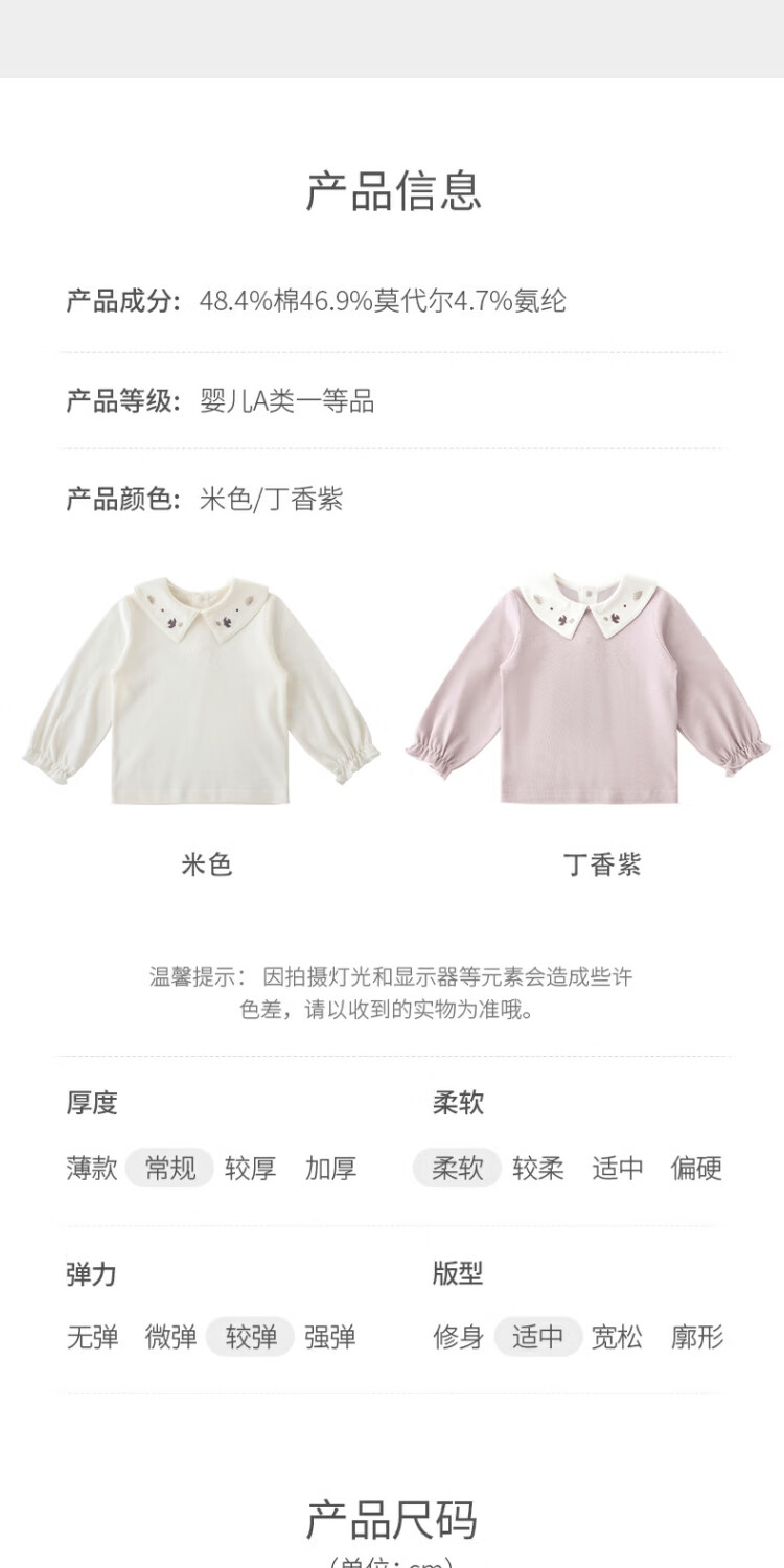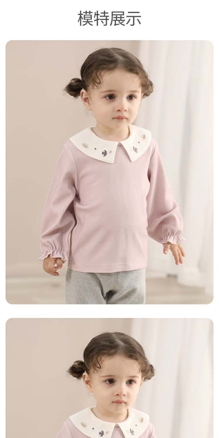 Bali Piggy Girls' Tops Spring and Autumn Modal Children's T-Shirts Infants and Toddlers Sweet and Cute Doll Collar Tops Autumn Baby T-Shirts Beige 100