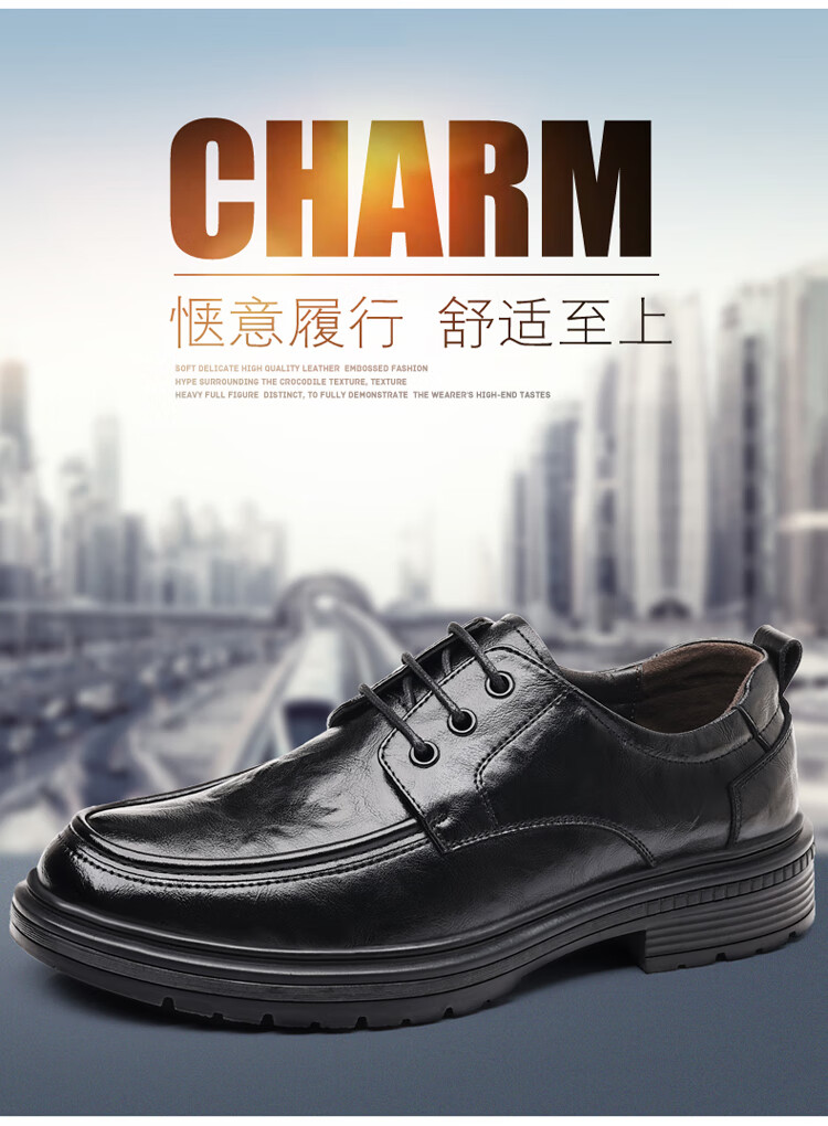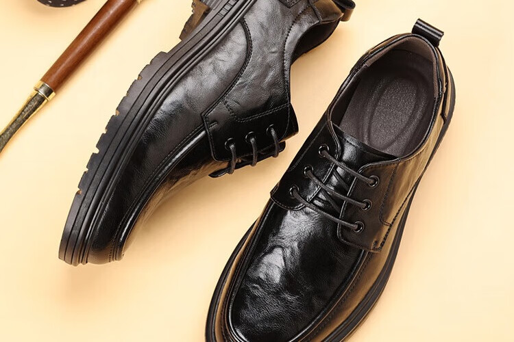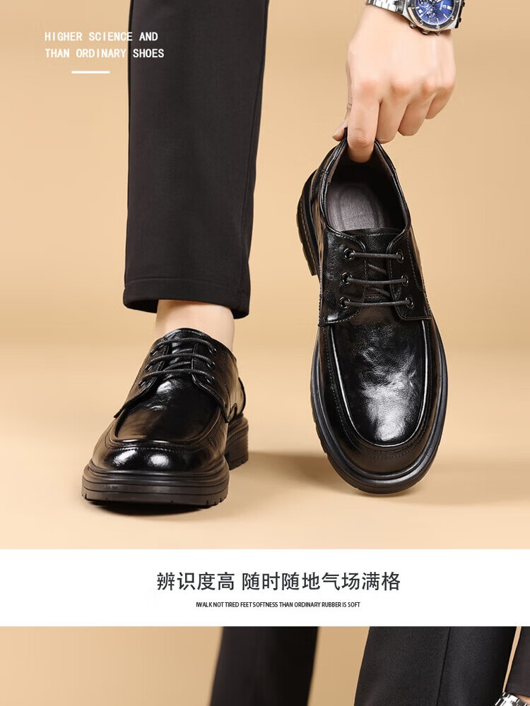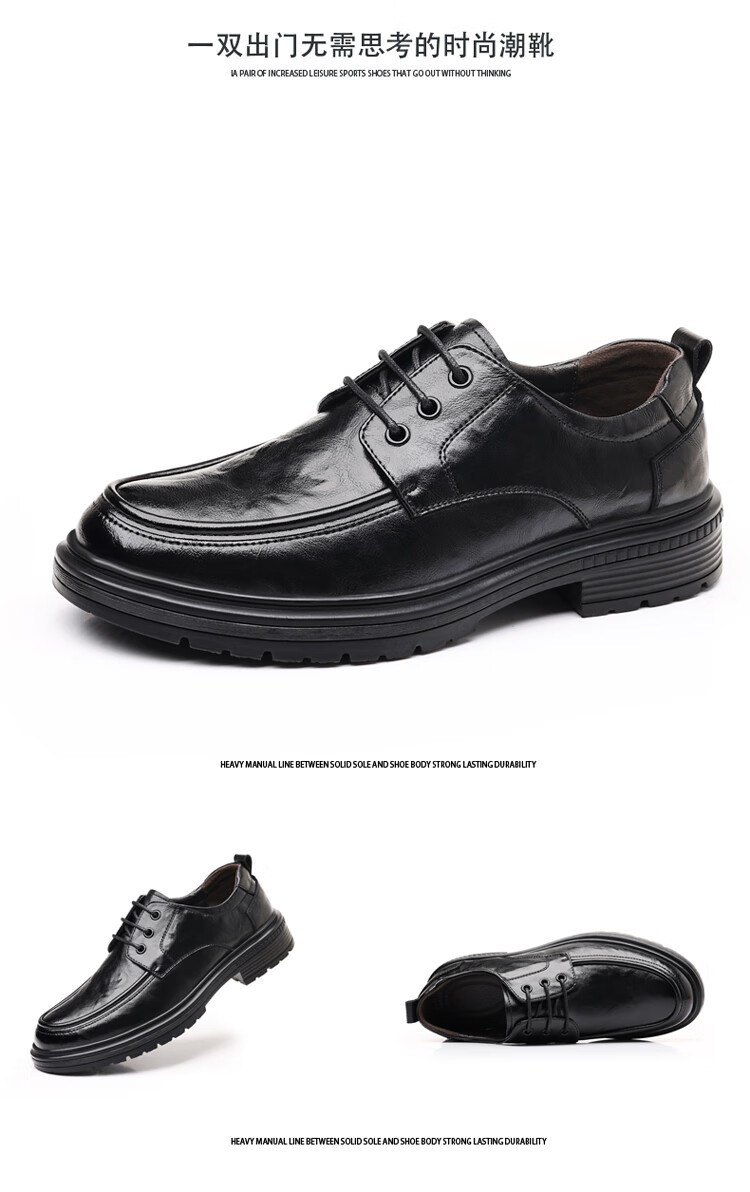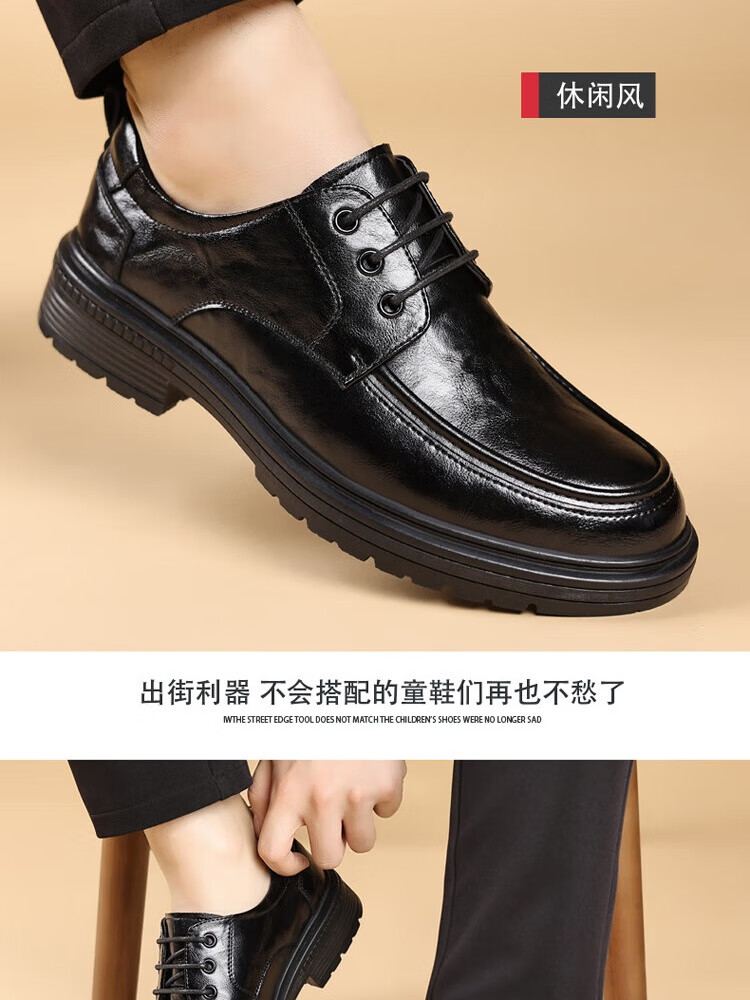 New Men's Business Casual Leather Shoes Comfortable Soft Sole Breathable Thick Sole Formal Men's Shoes (Item No. 2326) Black 41