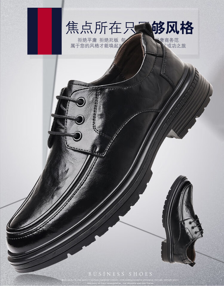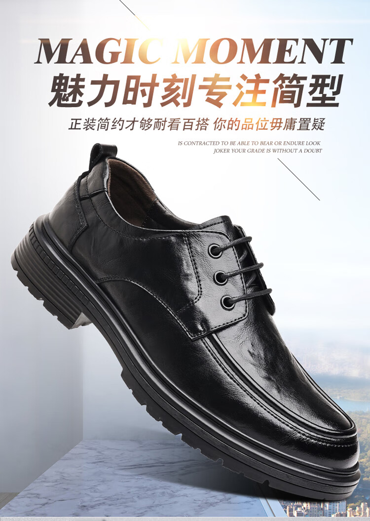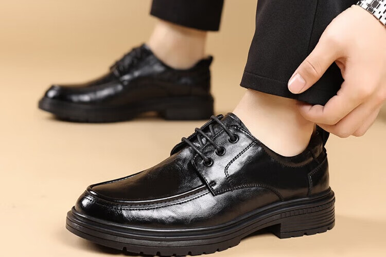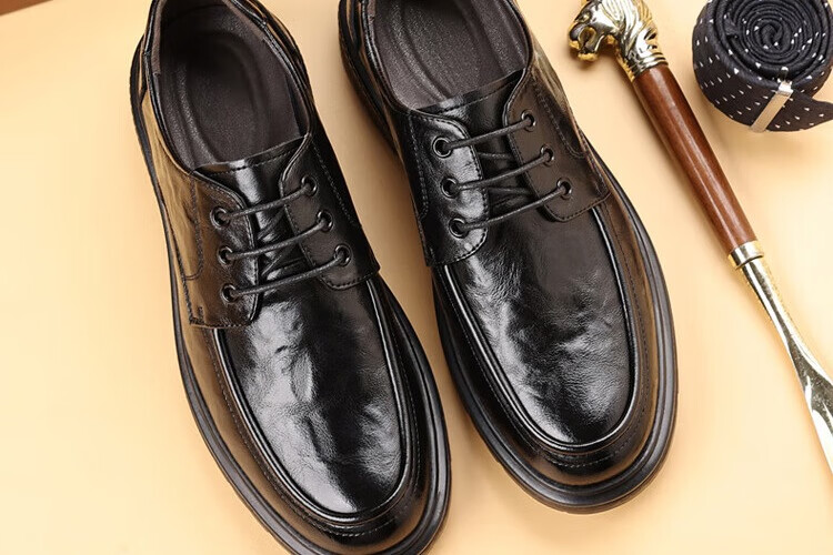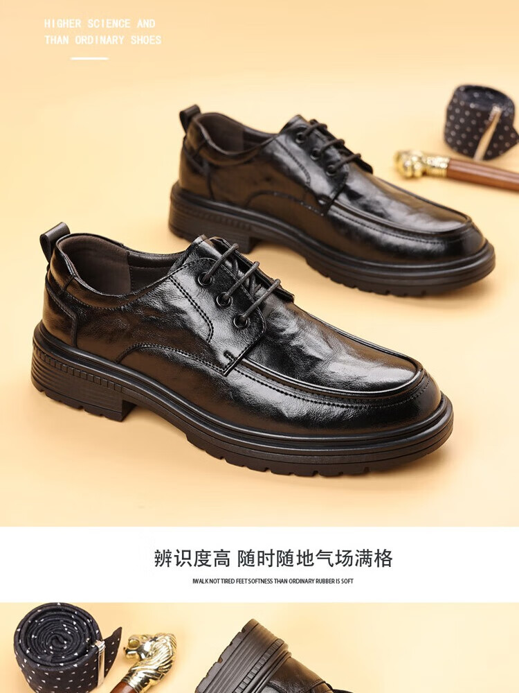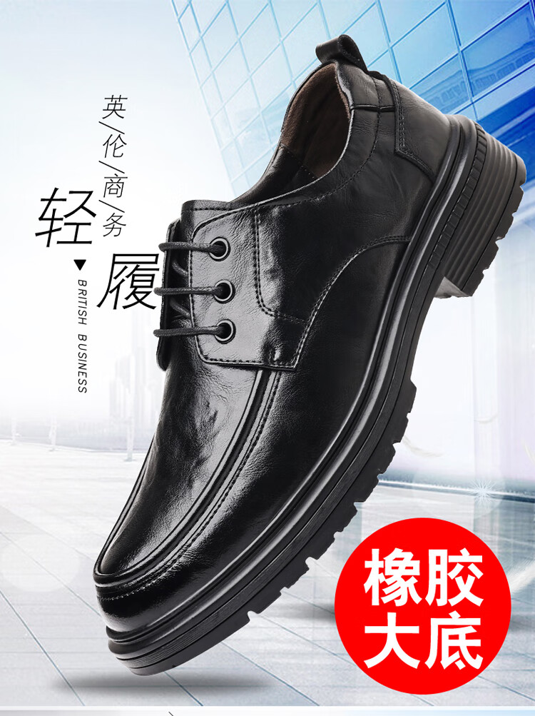 New Men's Business Casual Leather Shoes Comfortable Soft Sole Breathable Thick Sole Formal Men's Shoes (Item No. 2326) Black 41